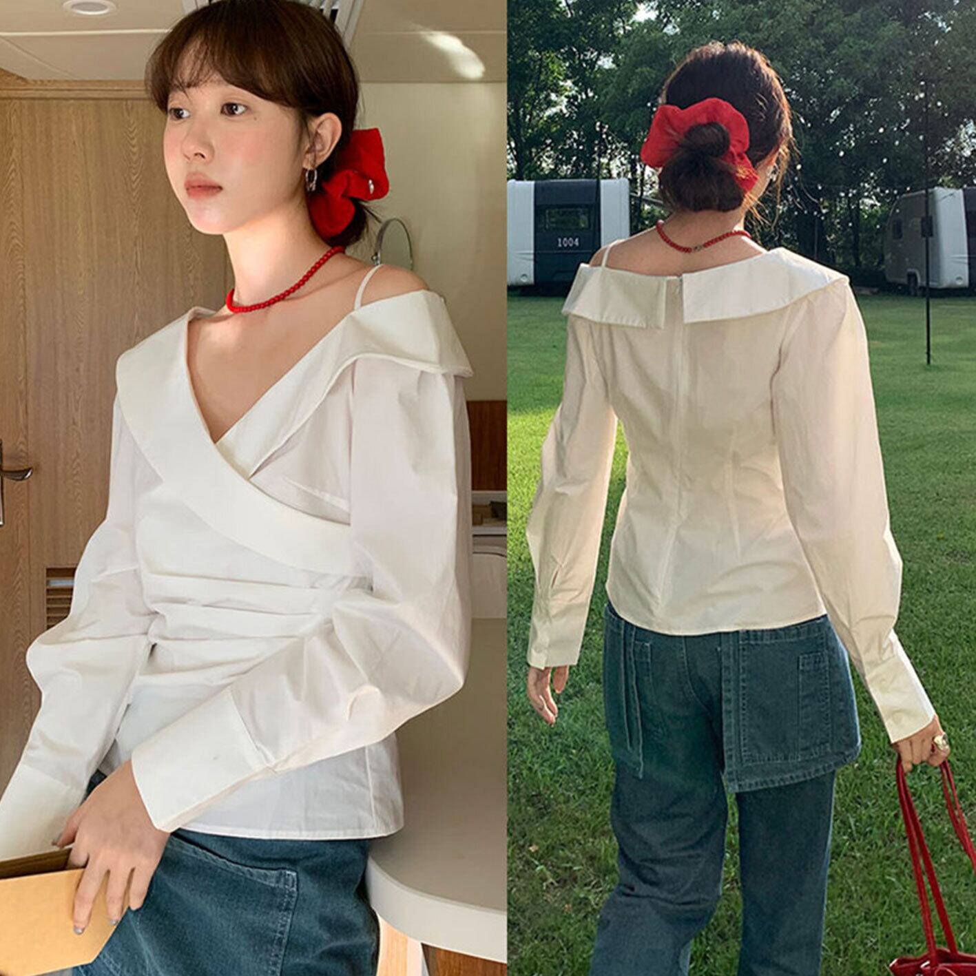 今季マストバイ おしゃれ カジュアル系 トップス シャツ/ブラウス トップス アウター ボトムス レディース ワンピース 春 夏 半袖 長袖 きれいめ ロング 可愛い かわいい 膝丈 ひざ丈 20代 30代 40代 マキシ タイト レトロ モダン 白 黒 2024 RB-R7-03-NS-SA-092