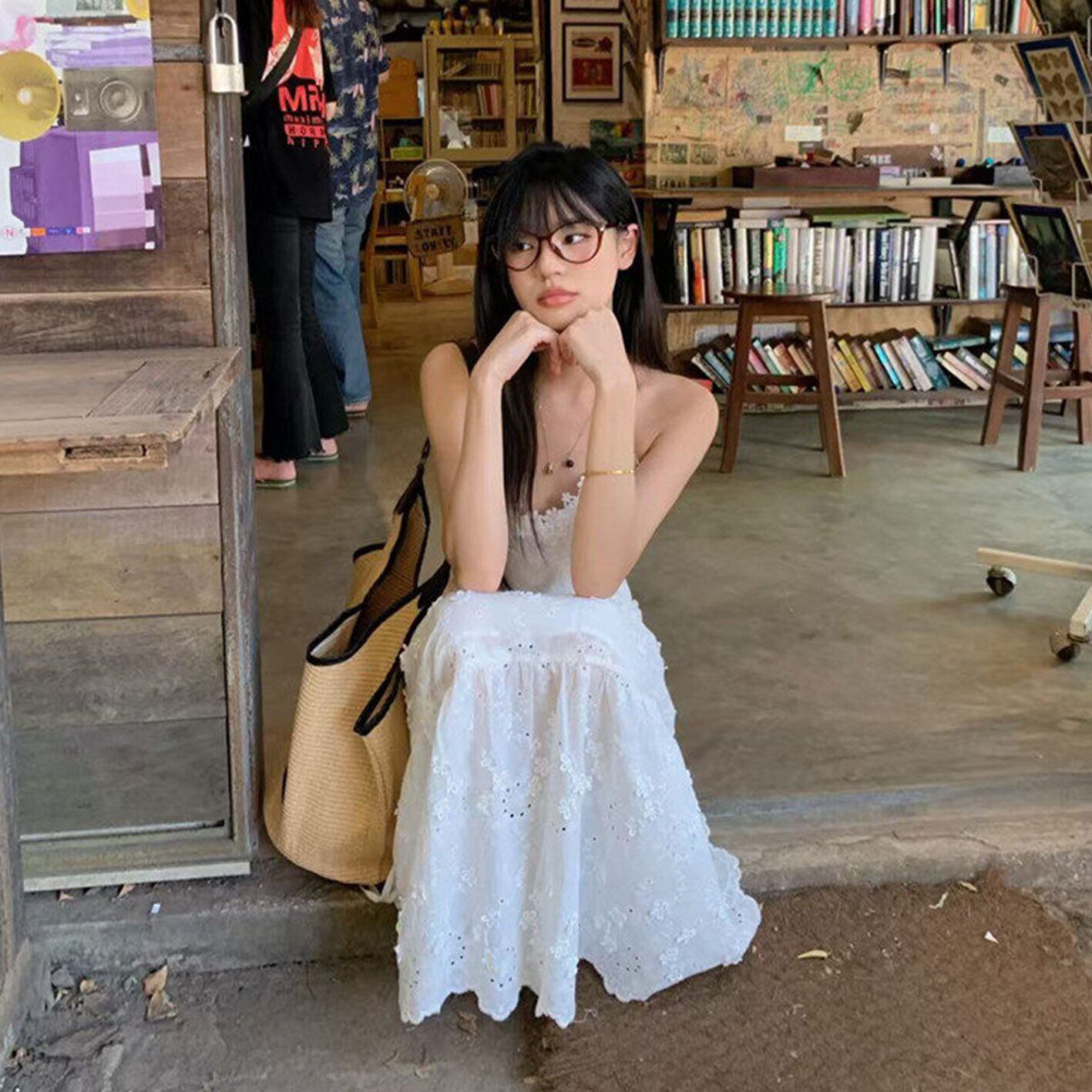 2025年INS 春夏新作 おしゃれ chic 韓国ファッション キャミソールワンピース トップス アウター ボトムス レディース ワンピース 春 夏 半袖 長袖 きれいめ ロング 可愛い かわいい 膝丈 ひざ丈 20代 30代 40代 マキシ タイト レトロ モダン 白 黒 2024 RB-R7-04-NS-SA-038