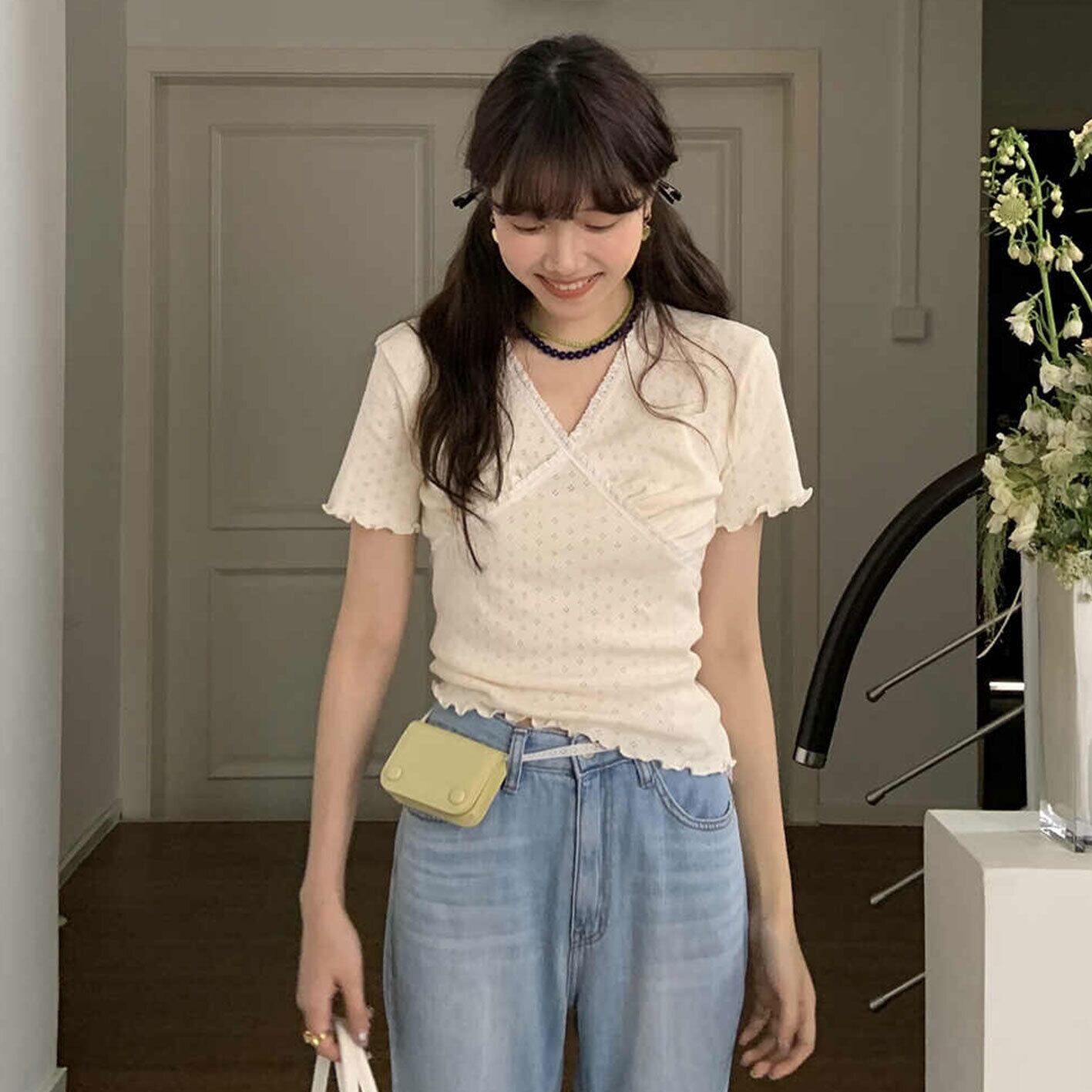 2025年INS 春夏新作 おしゃれ レトロ Vネック カジュアル系 ニット シャツ/ブラウス トップス アウター ボトムス レディース ワンピース 春 夏 半袖 長袖 きれいめ ロング 可愛い かわいい 膝丈 ひざ丈 20代 30代 40代 マキシ タイト レトロ モダン 白 黒 2024 RB-R7-05-NS-SA-063