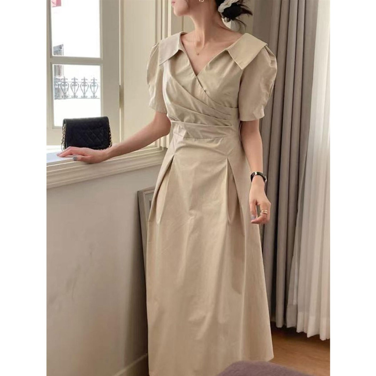 2025年INS 春夏新作 おしゃれ カジュアル系 配色 ロング ワンピース トップス アウター ボトムス レディース ワンピース 春 夏 半袖 長袖 きれいめ ロング 可愛い かわいい 膝丈 ひざ丈 20代 30代 40代 マキシ タイト レトロ モダン 白 黒 2024 RB-R7-06-NS-SA-037