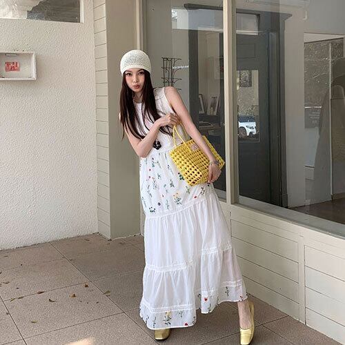 2025年INS 春夏新作 おしゃれ カジュアル系 chic 韓国ファッション ノースリーブワンピース トップス アウター ボトムス レディース ワンピース 春 夏 半袖 長袖 きれいめ ロング 可愛い かわいい 膝丈 ひざ丈 20代 30代 40代 マキシ タイト レトロ モダン 白 黒 2024 RB-R7-06-NS-SA-074