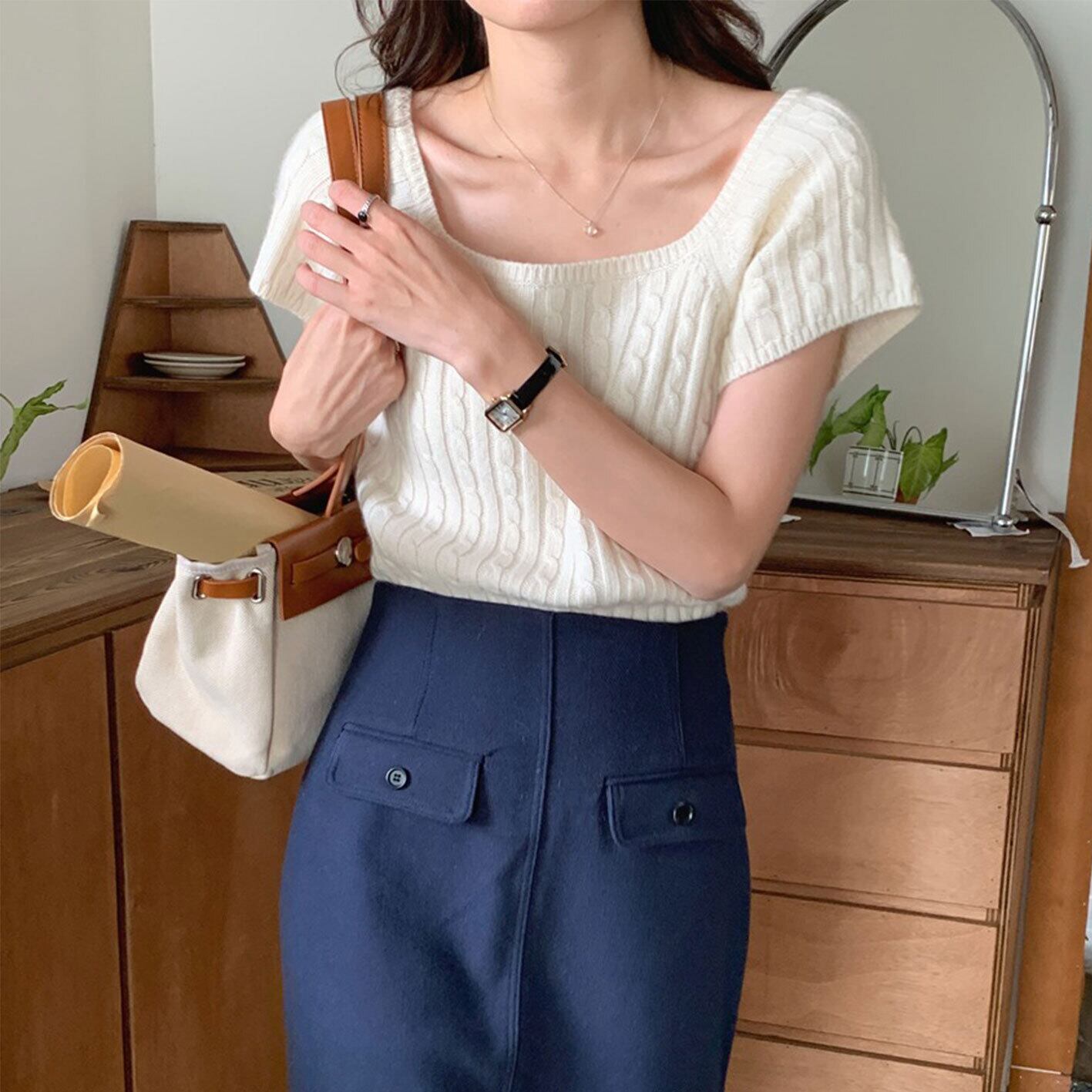 2025年INS 夏新作 おしゃれ カジュアル系 韓国風 トップス 半袖ニット トップス アウター ボトムス レディース ワンピース 春 夏 半袖 長袖 きれいめ ロング 可愛い かわいい 膝丈 ひざ丈 20代 30代 40代 マキシ タイト レトロ モダン 白 黒 2024 RB-R7-07-NS-SA-049