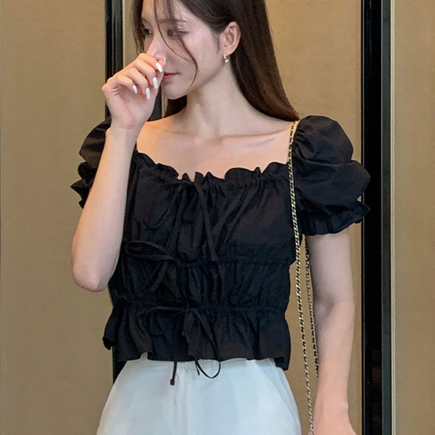 2025年INS 夏新作 おしゃれ カジュアル系 韓国風 トップス パフスリーブ ブラウス トップス アウター ボトムス レディース ワンピース 春 夏 半袖 長袖 きれいめ ロング 可愛い かわいい 膝丈 ひざ丈 20代 30代 40代 マキシ タイト レトロ モダン 白 黒 2024 RB-R7-07-NS-SA-058