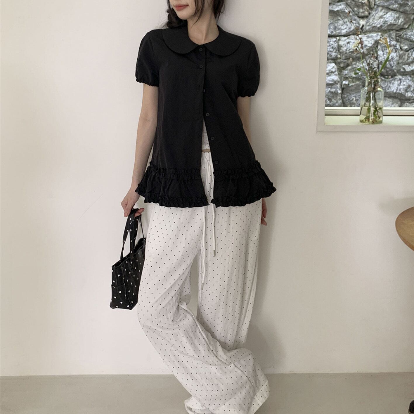 2025年INS 夏新作 INS 新作 おしゃれ カジュアル系 韓国風 トップス パフスリーブ ブラウス トップス アウター ボトムス レディース ワンピース 春 夏 半袖 長袖 きれいめ ロング 可愛い かわいい 膝丈 ひざ丈 20代 30代 40代 マキシ タイト レトロ モダン 白 黒 2024 RB-R7-07-NS-SA-059