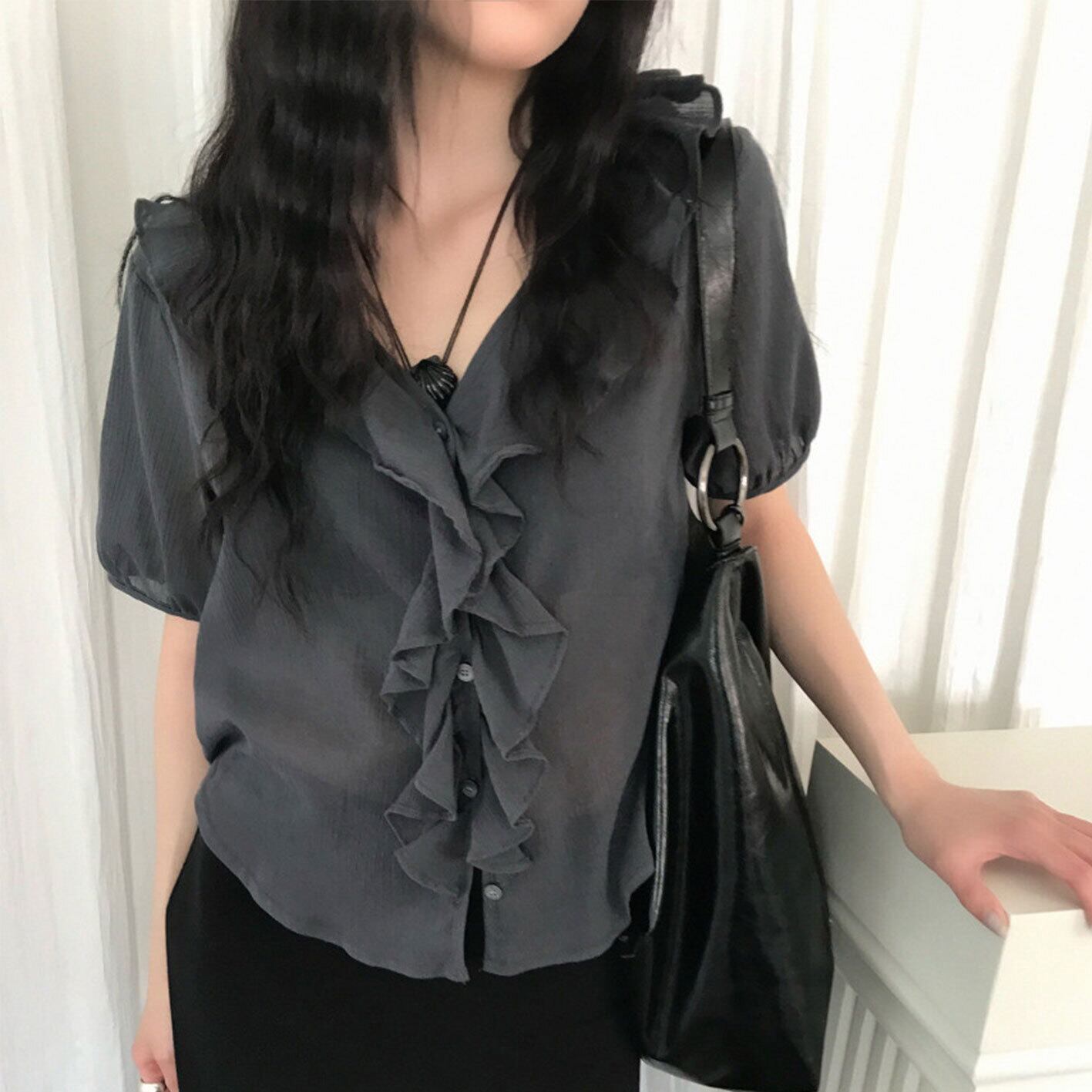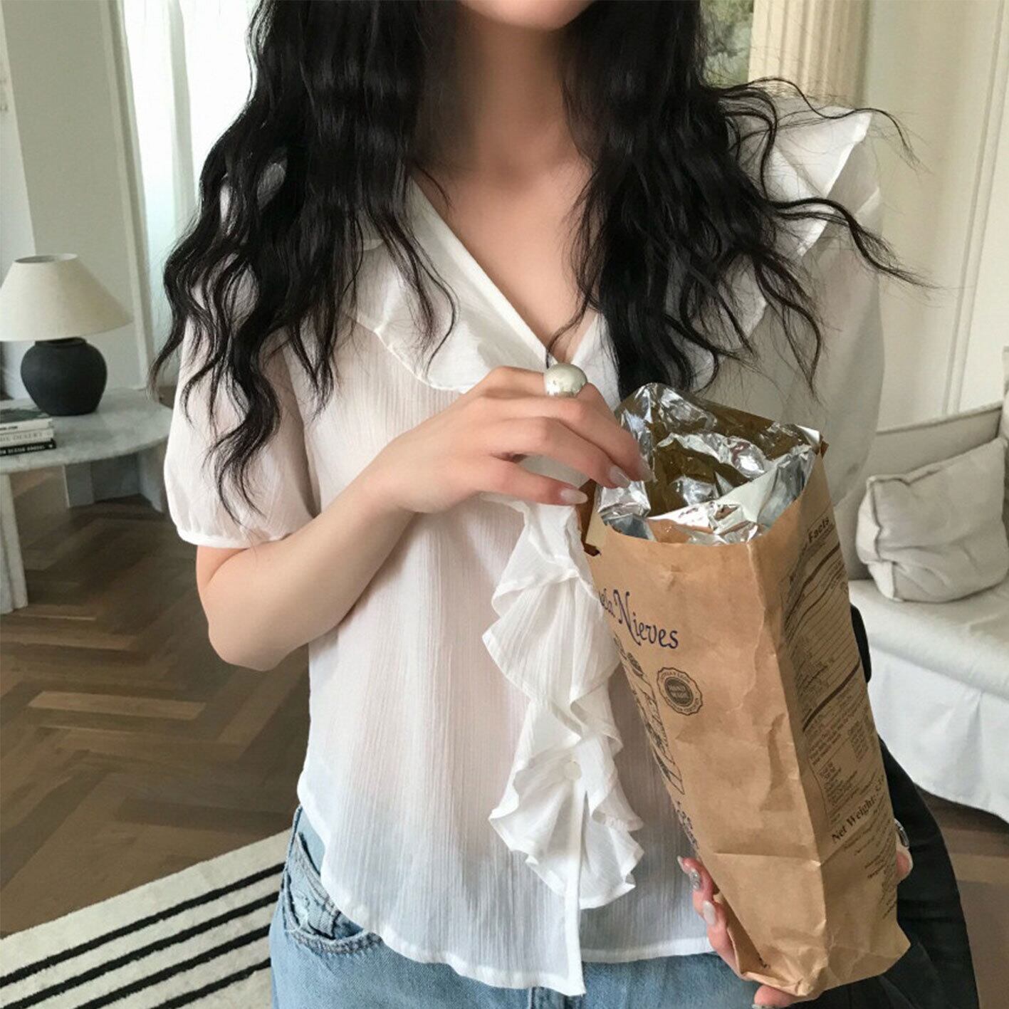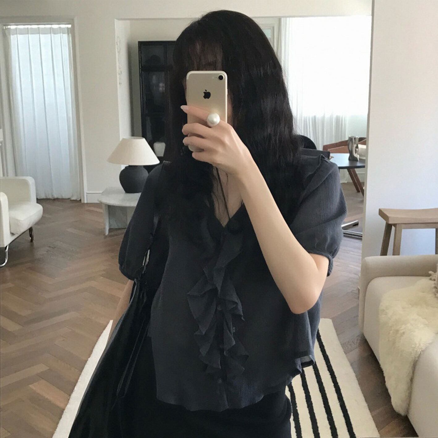 2025年INS 夏新作 おしゃれ カジュアル系 韓国風 トップス Vネック パフスリーブ ブラウス トップス アウター ボトムス レディース ワンピース 春 夏 半袖 長袖 きれいめ ロング 可愛い かわいい 膝丈 ひざ丈 20代 30代 40代 マキシ タイト レトロ モダン 白 黒 2024 RB-R7-07-NS-SA-061