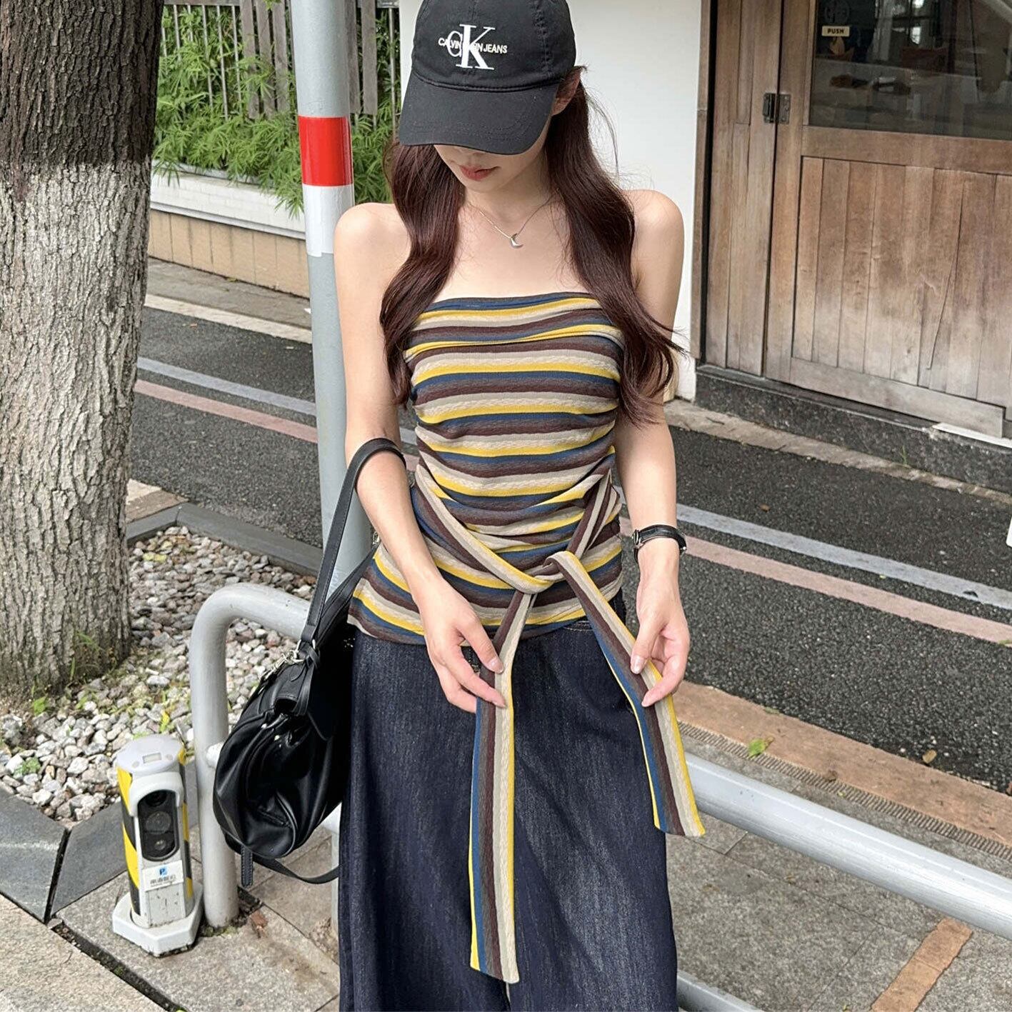 2025年INS 夏新作 韓国ファッション 可愛い カジュアル系 ベアトップ タンクトップ トップス アウター ボトムス レディース ワンピース 春 夏 半袖 長袖 きれいめ ロング 可愛い かわいい 膝丈 ひざ丈 20代 30代 40代 マキシ タイト レトロ モダン 白 黒 2024 RB-R7-07-NS-SA-067