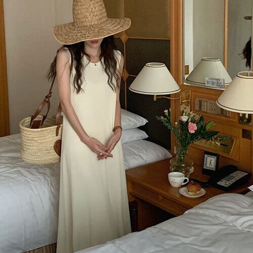 2025年INS 夏新作 おしゃれ 韓国風 可愛い 気質 ノースリーブ ロングワンピース トップス アウター ボトムス レディース ワンピース 春 夏 半袖 長袖 きれいめ ロング 可愛い かわいい 膝丈 ひざ丈 20代 30代 40代 マキシ タイト レトロ モダン 白 黒 2024 RB-R7-07-NS-SA-095