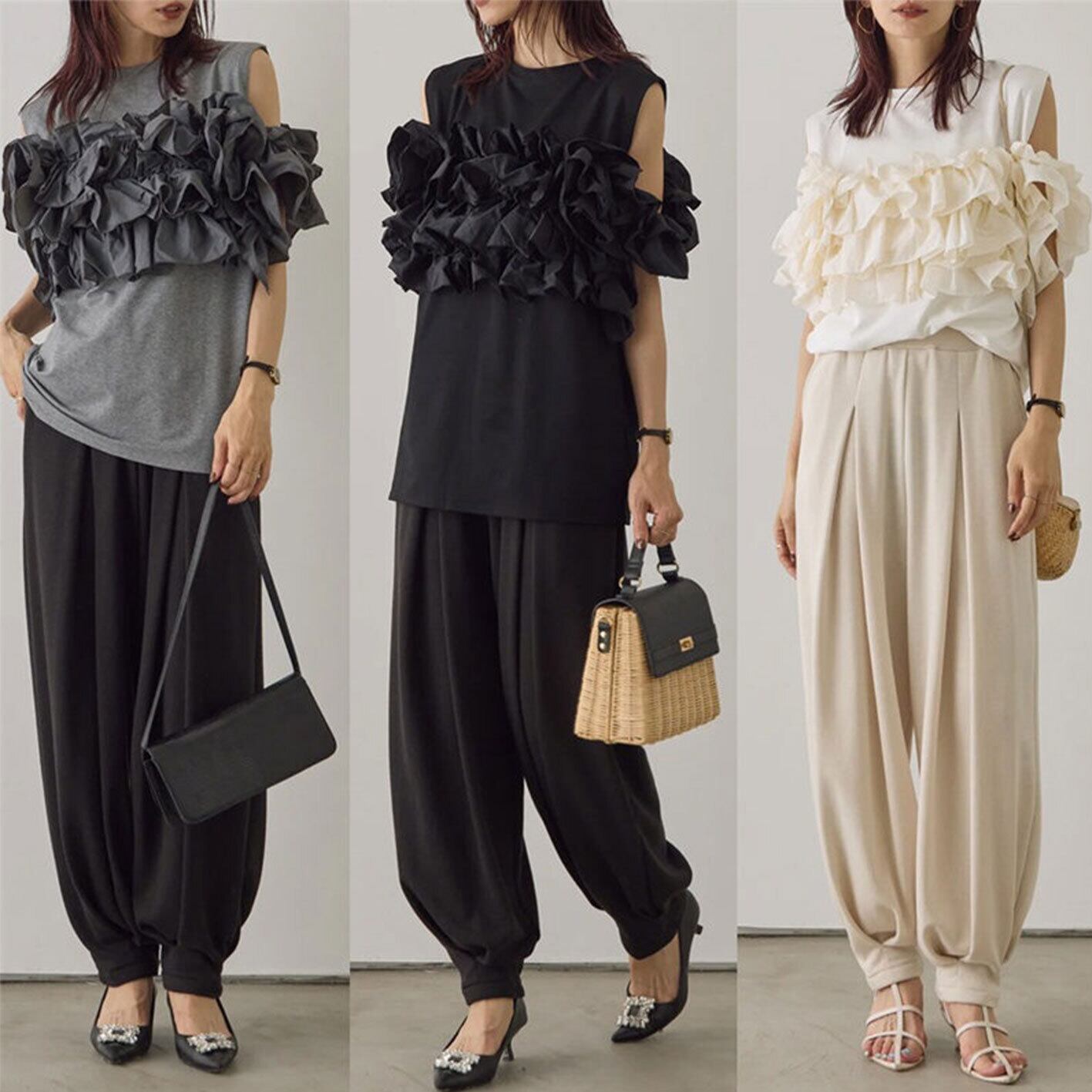 2025年INS 夏新作 韓国風 気質 おしゃれ フリル Tシャツ トップス アウター ボトムス レディース ワンピース 春 夏 半袖 長袖 きれいめ ロング 可愛い かわいい 膝丈 ひざ丈 20代 30代 40代 マキシ タイト レトロ モダン 白 黒 2024 RB-R7-07-NS-SA-105