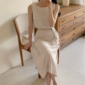 2025年INS 夏新作 おしゃれ 韓国風 気質 ノースリーブ ロングワンピース トップス アウター ボトムス レディース ワンピース 春 夏 半袖 長袖 きれいめ ロング 可愛い かわいい 膝丈 ひざ丈 20代 30代 40代 マキシ タイト レトロ モダン 白 黒 2024 RB-R7-07-NS-SA-108