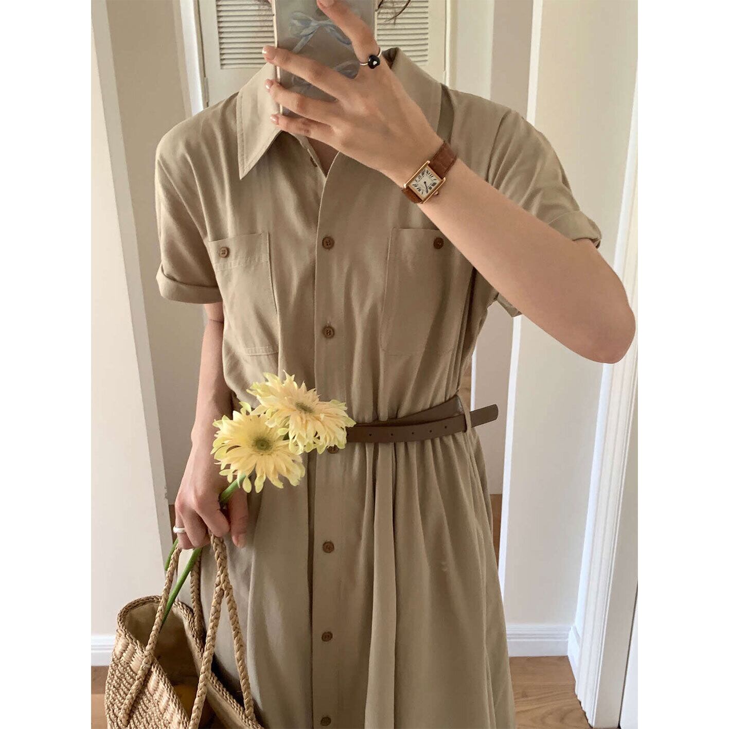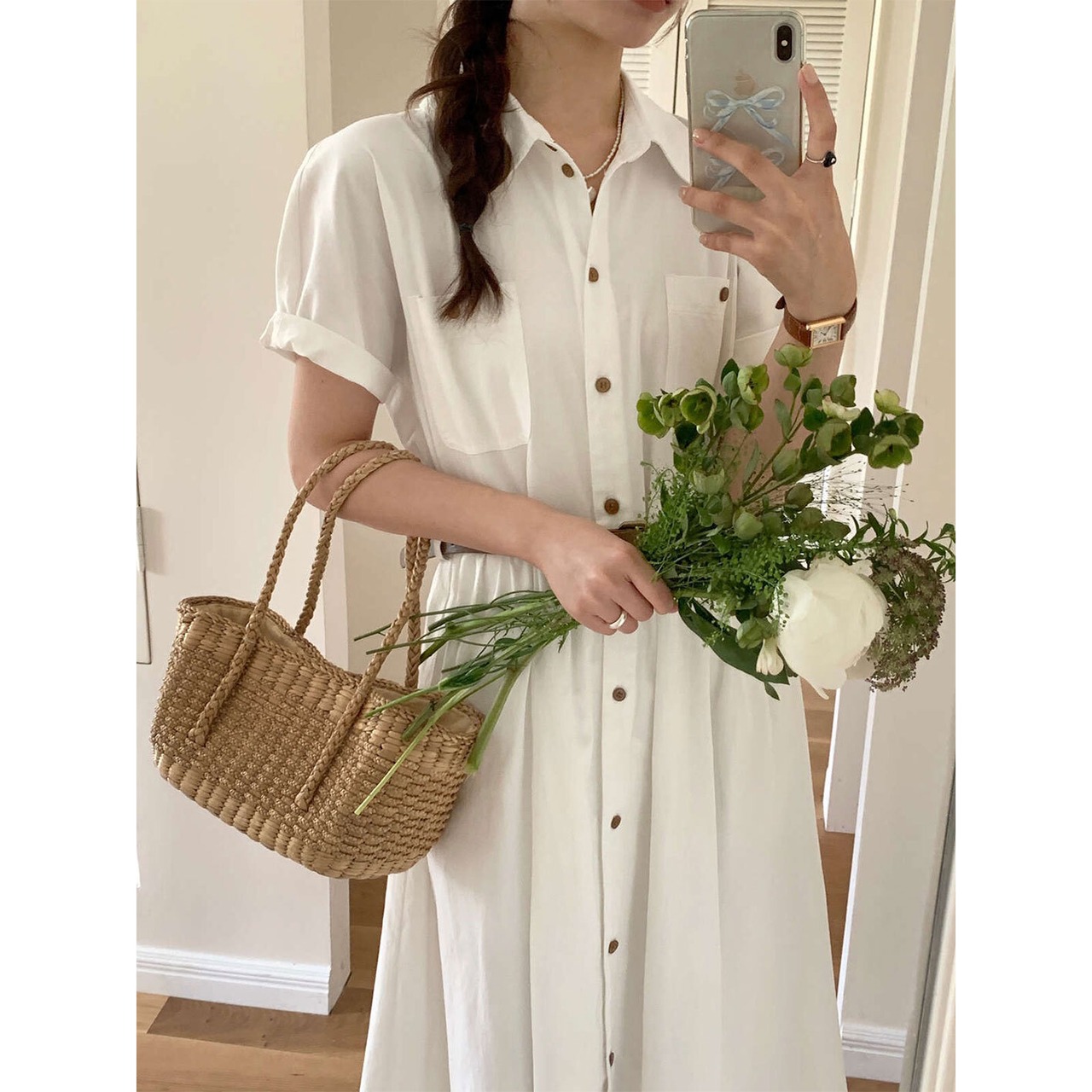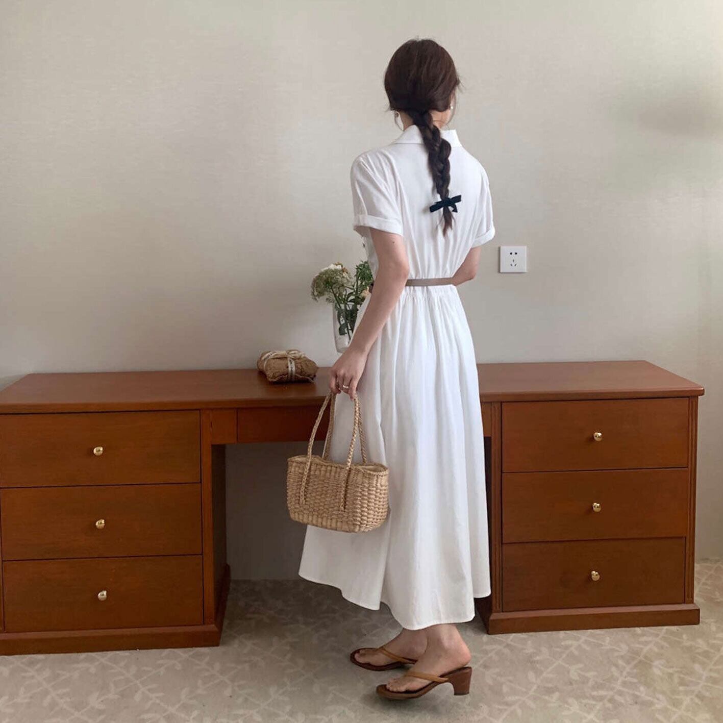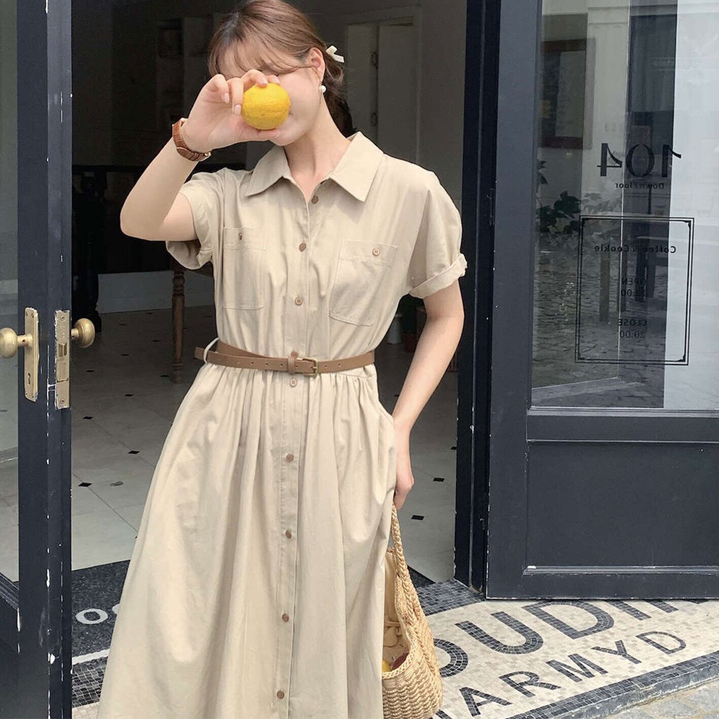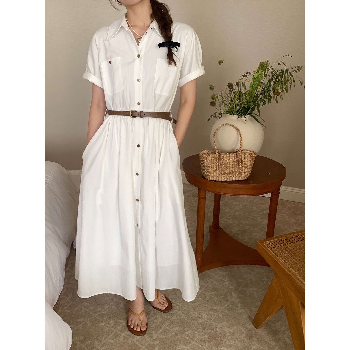 2025年INS 夏新作 韓国風 気質 おしゃれ シングルブレスト ワンピース 全2色 トップス アウター ボトムス レディース ワンピース 春 夏 半袖 長袖 きれいめ ロング 可愛い かわいい 膝丈 ひざ丈 20代 30代 40代 マキシ タイト レトロ モダン 白 黒 2024 RB-R7-07-NS-SA-111