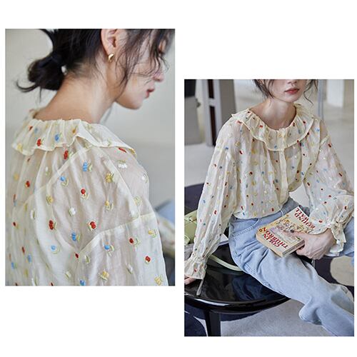 2023年INS秋冬新作 気質 合わせやすい 刺繍 長袖 シャツ/ブラウス トップス アウター ボトムス レディース ワンピース 春 夏 半袖 長袖 きれいめ ロング 可愛い かわいい 膝丈 ひざ丈 20代 30代 40代 マキシ タイト レトロ モダン 白 黒 2024 RB-R7-08-NS-SA-013