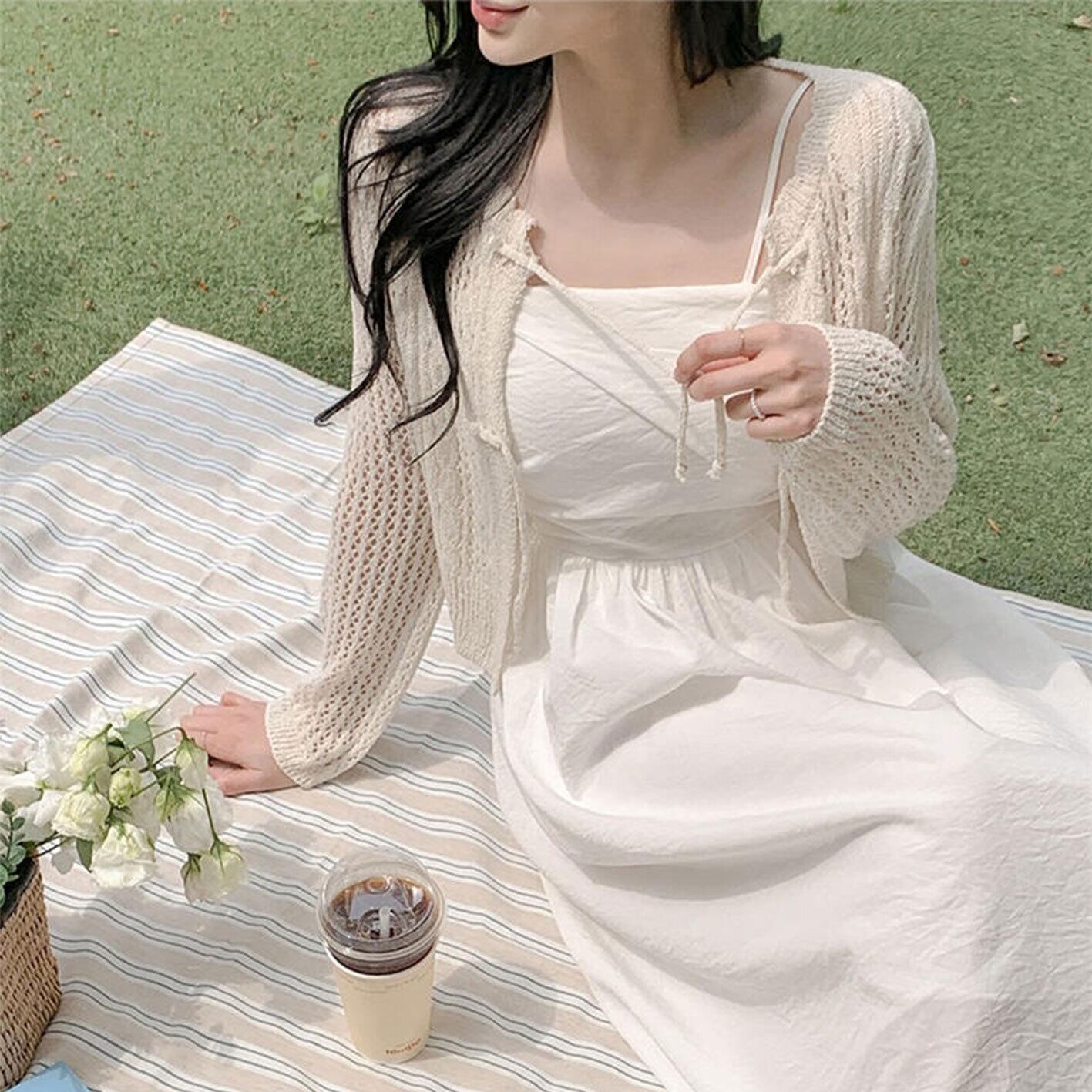 2025年INS 春夏新作 おしゃれ 気質 カジュアル系 韓国風 カーディガン ニット トップス アウター ボトムス レディース ワンピース 春 夏 半袖 長袖 きれいめ ロング 可愛い かわいい 膝丈 ひざ丈 20代 30代 40代 マキシ タイト レトロ モダン 白 黒 2024 RB-R7-08-NS-SA-039