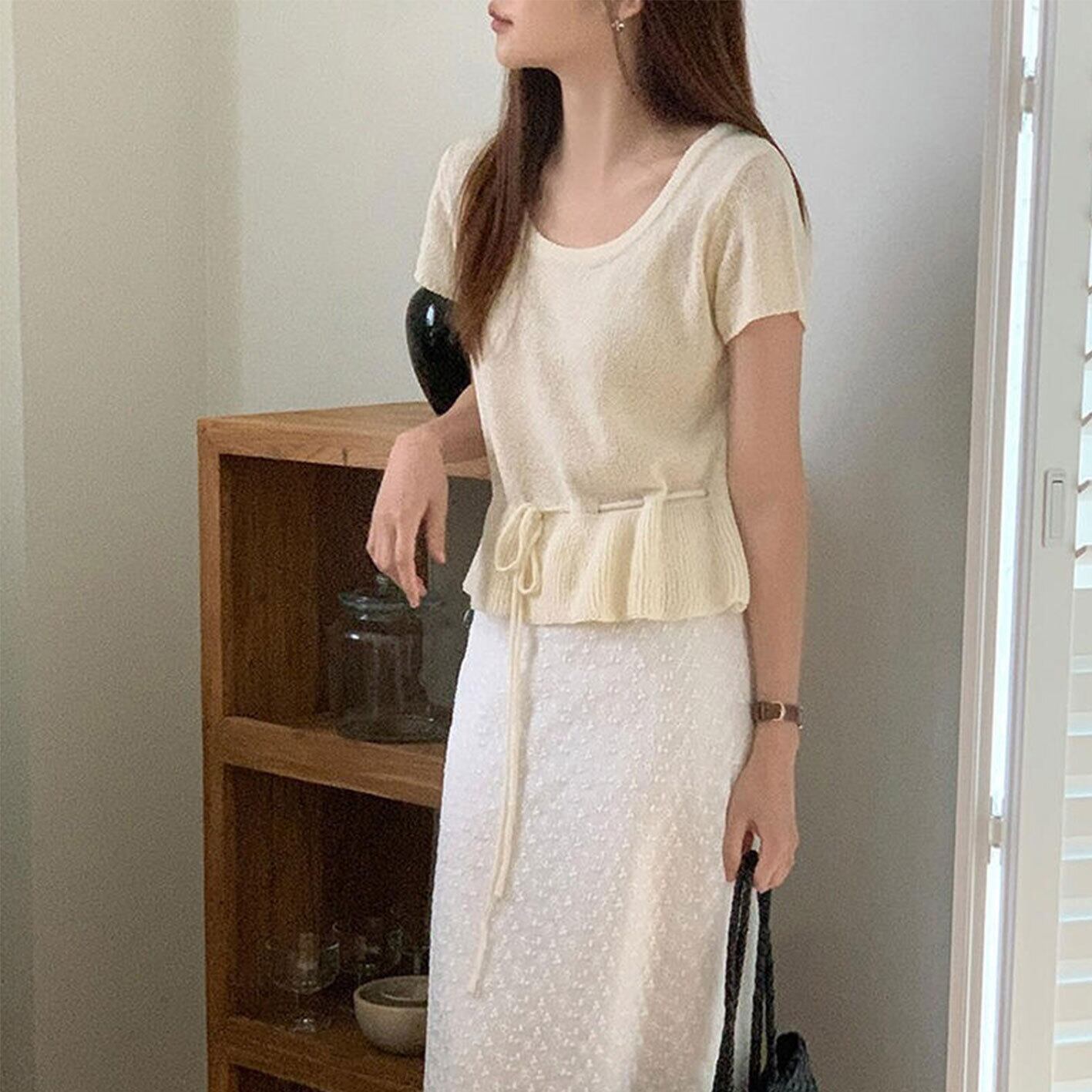2025年INS 夏新作 おしゃれ 気質 カジュアル系 韓国風 ニット トップス トップス アウター ボトムス レディース ワンピース 春 夏 半袖 長袖 きれいめ ロング 可愛い かわいい 膝丈 ひざ丈 20代 30代 40代 マキシ タイト レトロ モダン 白 黒 2024 RB-R7-08-NS-SA-040