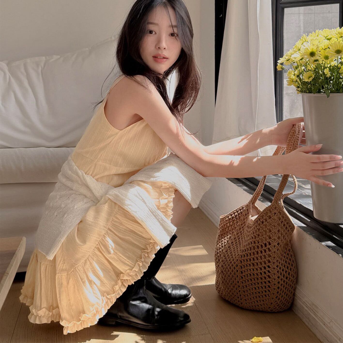 2025年INS 春夏新作 おしゃれ カジュアル系 気質 設計感 キャミソール ワンピース トップス アウター ボトムス レディース ワンピース 春 夏 半袖 長袖 きれいめ ロング 可愛い かわいい 膝丈 ひざ丈 20代 30代 40代 マキシ タイト レトロ モダン 白 黒 2024 RB-R7-08-NS-SA-064