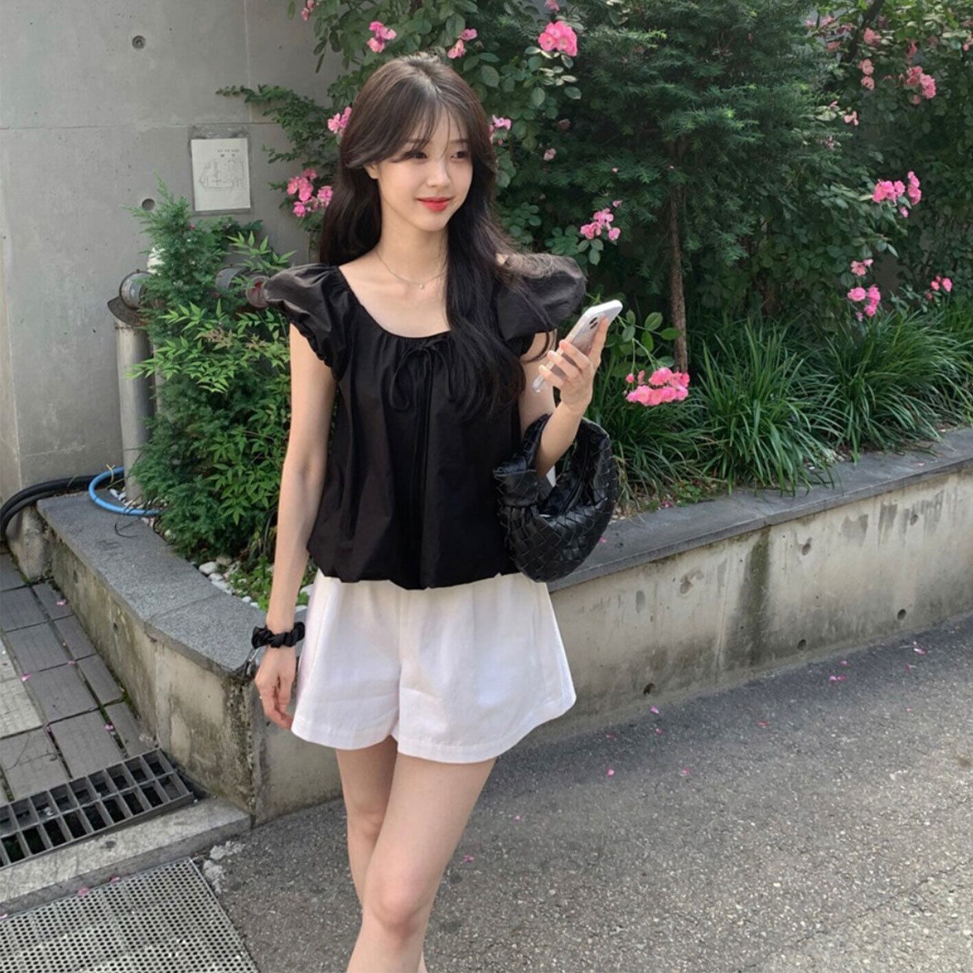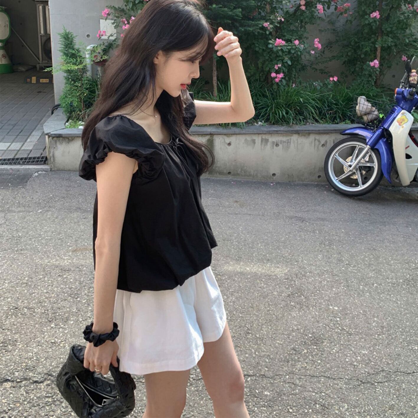 2025年INS 春夏新作 おしゃれ パフスリーブ カジュアル系 韓国風 シャツ/ブラウス トップス アウター ボトムス レディース ワンピース 春 夏 半袖 長袖 きれいめ ロング 可愛い かわいい 膝丈 ひざ丈 20代 30代 40代 マキシ タイト レトロ モダン 白 黒 2024 RB-R7-08-NS-SA-072