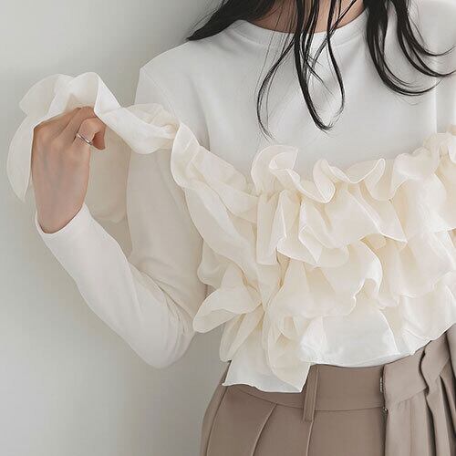 2025年INS 秋新作 韓国風 気質 おしゃれ chic 韓国ファッション フリル Tシャツ トップス アウター ボトムス レディース ワンピース 春 夏 半袖 長袖 きれいめ ロング 可愛い かわいい 膝丈 ひざ丈 20代 30代 40代 マキシ タイト レトロ モダン 白 黒 2024 RB-R7-09-NS-SA-006