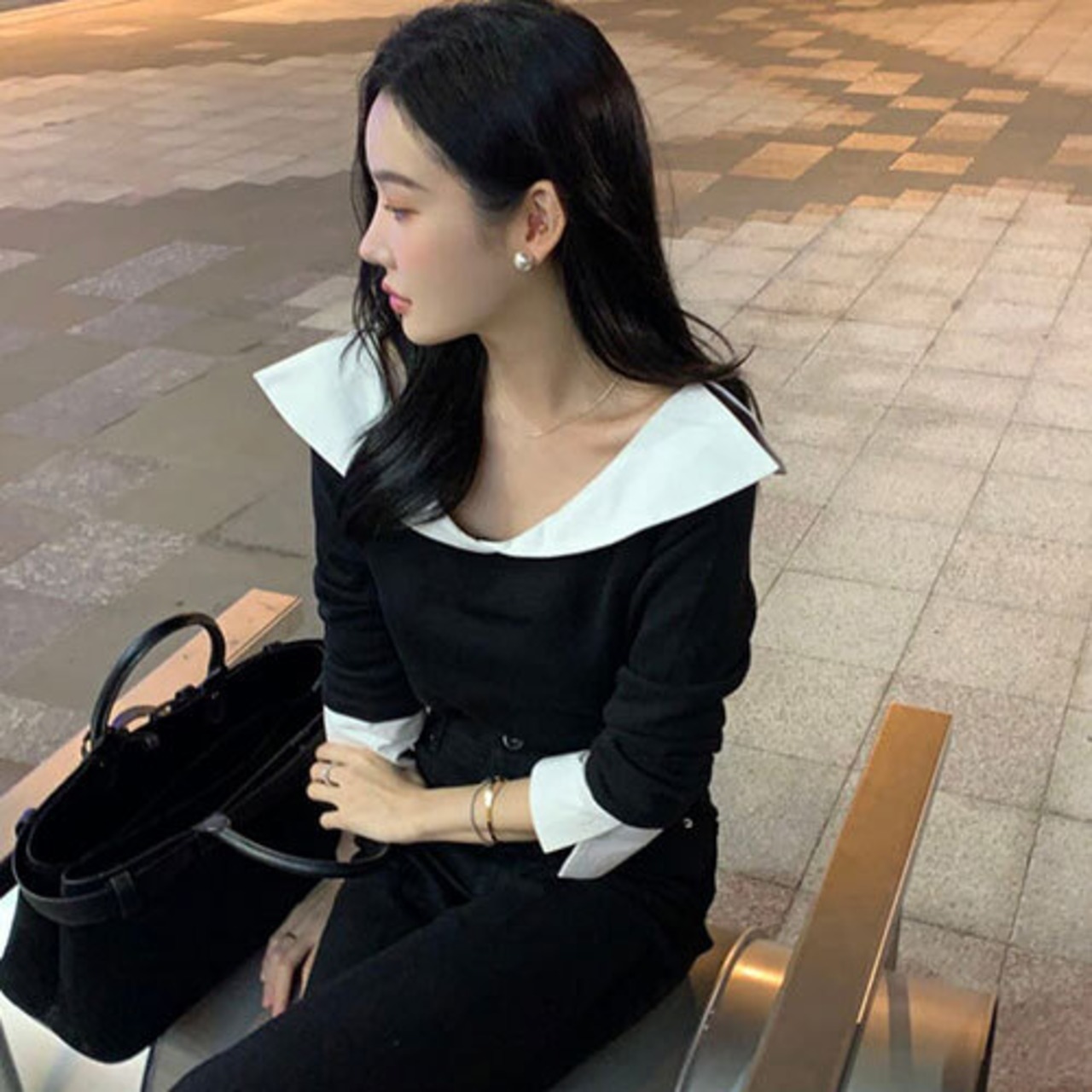 2025年INS 秋新作 韓国風 気質 おしゃれ chic 韓国ファッション 配色 トップス シャツ トップス アウター ボトムス レディース ワンピース 春 夏 半袖 長袖 きれいめ ロング 可愛い かわいい 膝丈 ひざ丈 20代 30代 40代 マキシ タイト レトロ モダン 白 黒 2024 RB-R7-09-NS-SA-017