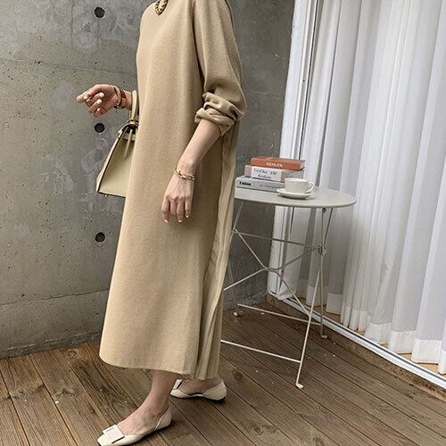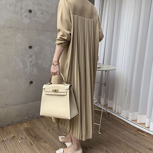 秋INS 新作 シンプル プリーツ ラウンドネック ロング 膝下丈 厚手 ロングワンピース トップス アウター ボトムス レディース ワンピース 春 夏 半袖 長袖 きれいめ ロング 可愛い かわいい 膝丈 ひざ丈 20代 30代 40代 マキシ タイト レトロ モダン 白 黒 2024 RB-R7-09-NS-SA-101