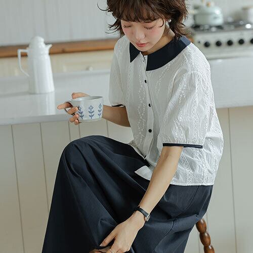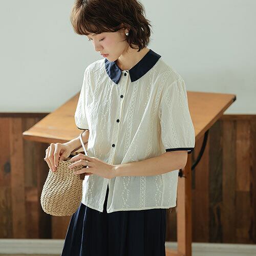 2025年INS 春夏新作 おしゃれ 韓国風 ブラウス 可愛い 刺しゅう飾り トップス アウター ボトムス レディース ワンピース 春 夏 半袖 長袖 きれいめ ロング 可愛い かわいい 膝丈 ひざ丈 20代 30代 40代 マキシ タイト レトロ モダン 白 黒 2024 RB-R7-09-NS-SA-110