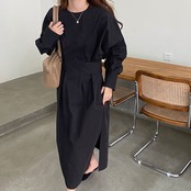 西洋風★ゆったり 無地 ストラップ ワンピース★ パフスリーブ トップス アウター ボトムス レディース ワンピース 春 夏 半袖 長袖 きれいめ ロング 可愛い かわいい 膝丈 ひざ丈 20代 30代 40代 マキシ タイト レトロ モダン 白 黒 2024 RB-R7-10-NS-SA-006
