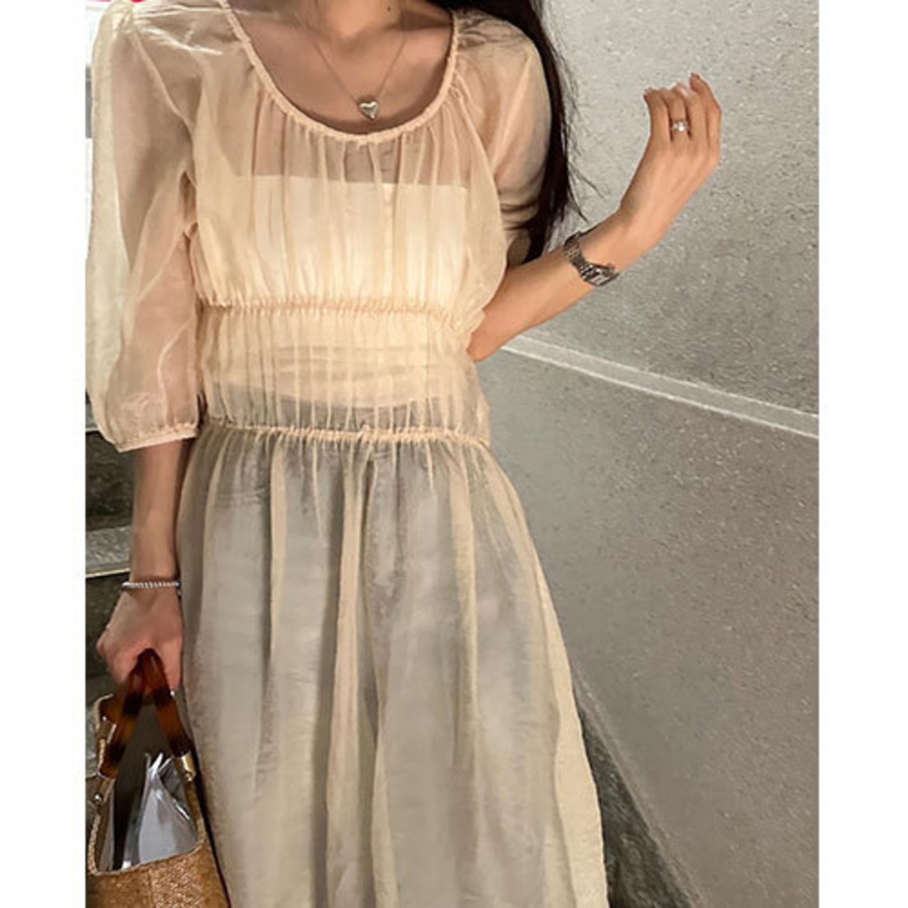 2025年INS 春夏新作 おしゃれ 可愛い 超気質 ガーゼ ワンピース トップス アウター ボトムス レディース ワンピース 春 夏 半袖 長袖 きれいめ ロング 可愛い かわいい 膝丈 ひざ丈 20代 30代 40代 マキシ タイト レトロ モダン 白 黒 2024 RB-R7-10-NS-SA-085