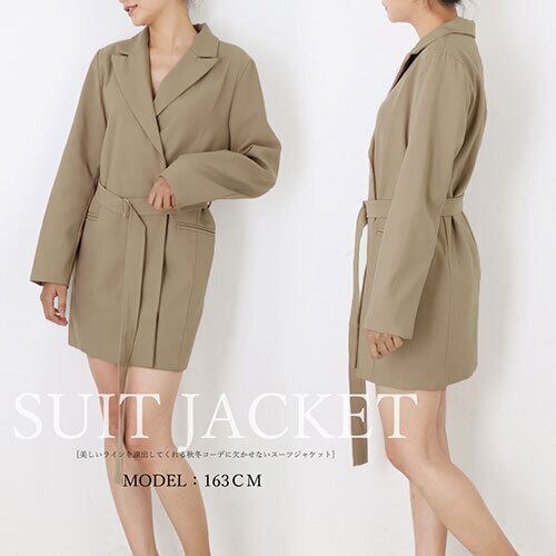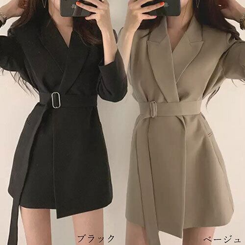 スーツジャケット レディース ベルト付き スーツアウター 長袖 Vネック トップス アウター ボトムス レディース ワンピース 春 夏 半袖 長袖 きれいめ ロング 可愛い かわいい 膝丈 ひざ丈 20代 30代 40代 マキシ タイト レトロ モダン 白 黒 2024 RB-R7-11-NS-SA-008