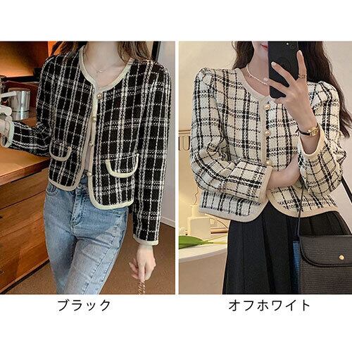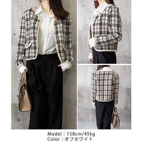 韓国風 ツイード ジャケット ライトアウター トップス アウター ボトムス レディース ワンピース 春 夏 半袖 長袖 きれいめ ロング 可愛い かわいい 膝丈 ひざ丈 20代 30代 40代 マキシ タイト レトロ モダン 白 黒 2024 RB-R7-11-NS-SA-018