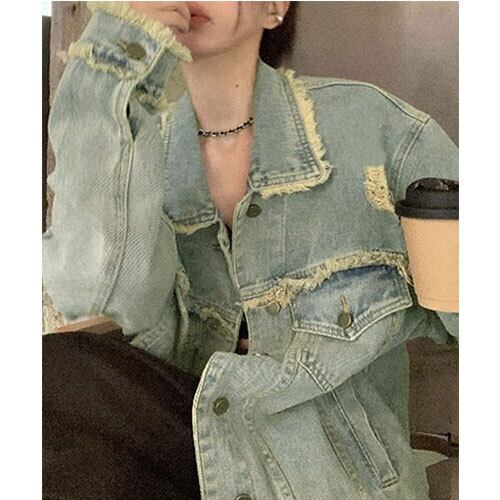 フリンジ デニムジャケット ダメージデニム トップス アウター ボトムス レディース ワンピース 春 夏 半袖 長袖 きれいめ ロング 可愛い かわいい 膝丈 ひざ丈 20代 30代 40代 マキシ タイト レトロ モダン 白 黒 2024 RB-R7-11-NS-SA-022