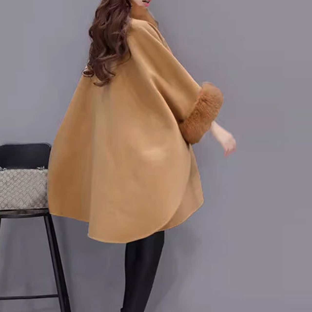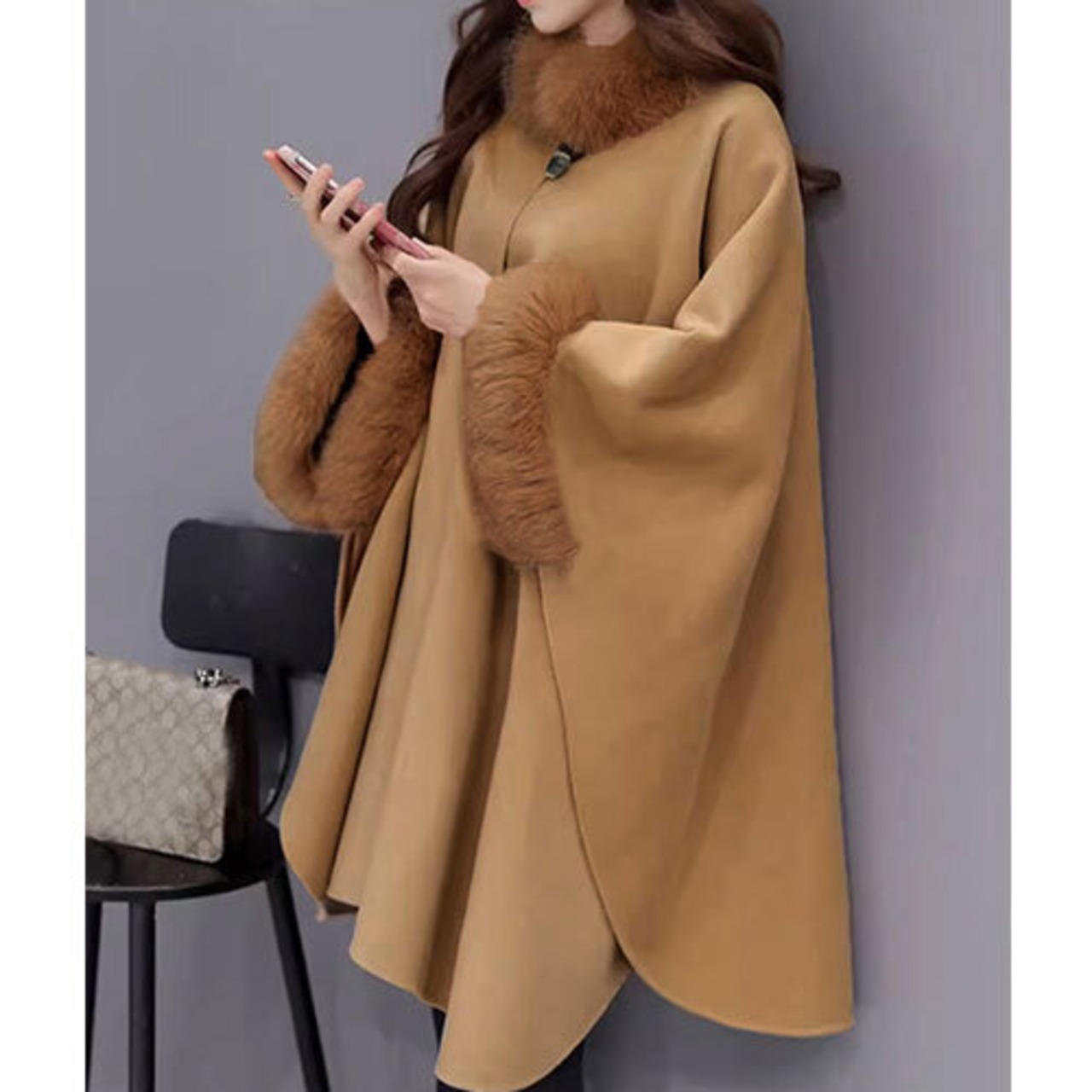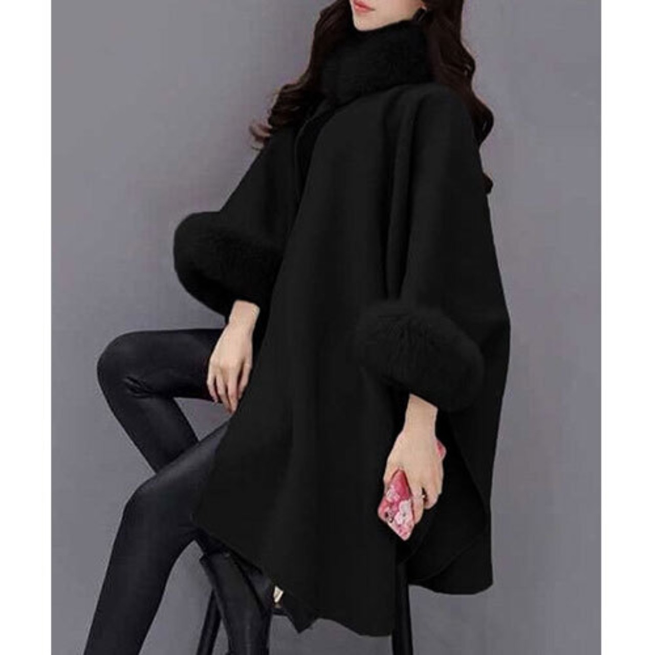 ファー付き ケープコート レディース 韓国 トップス アウター ボトムス レディース ワンピース 春 夏 半袖 長袖 きれいめ ロング 可愛い かわいい 膝丈 ひざ丈 20代 30代 40代 マキシ タイト レトロ モダン 白 黒 2024 RB-R7-11-NS-SA-038