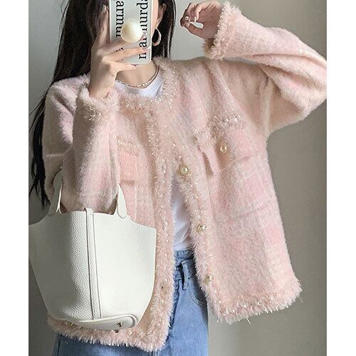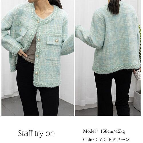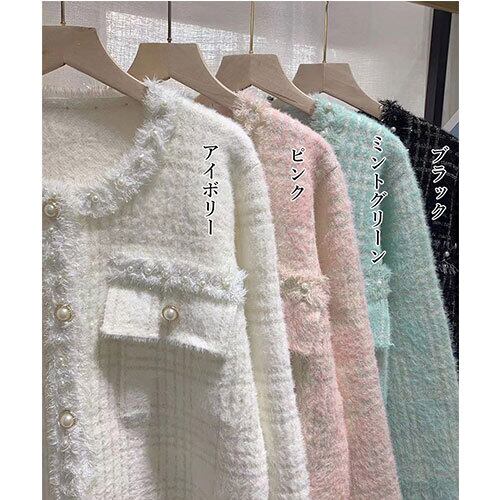 ラメ ツイード風 ジャケット 韓国 ニット 秋冬 トップス アウター ボトムス レディース ワンピース 春 夏 半袖 長袖 きれいめ ロング 可愛い かわいい 膝丈 ひざ丈 20代 30代 40代 マキシ タイト レトロ モダン 白 黒 2024 RB-R7-11-NS-SA-039