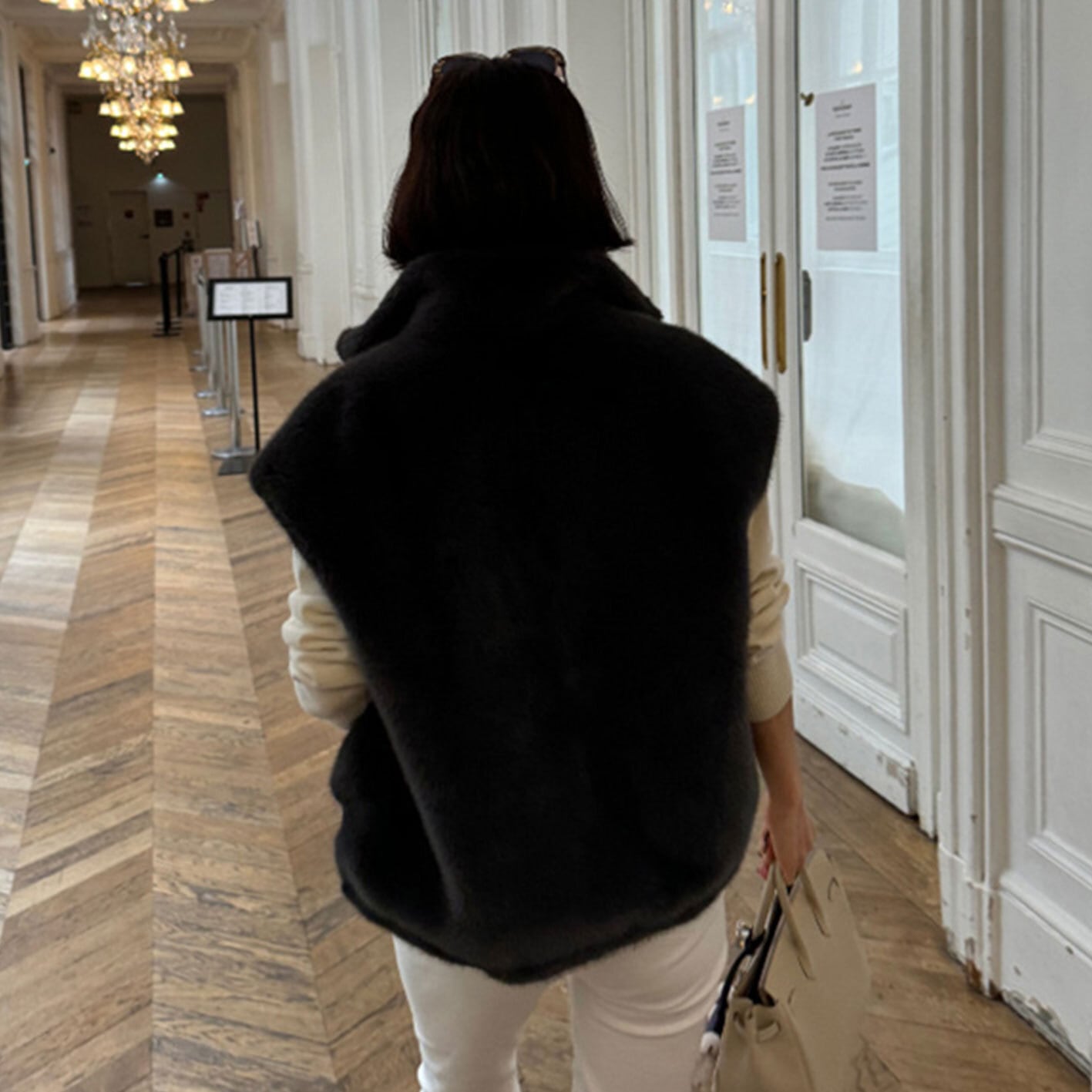 韓国ファッション おしゃれなフード付きフェイクファーーベスト 大きめ 冬アウター トップス アウター ボトムス レディース ワンピース 春 夏 半袖 長袖 きれいめ ロング 可愛い かわいい 膝丈 ひざ丈 20代 30代 40代 マキシ タイト レトロ モダン 白 黒 2024 RB-R7-12-NS-SA-040