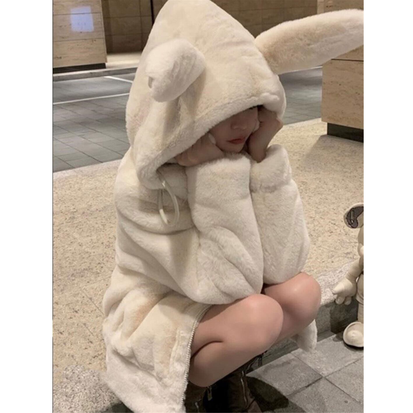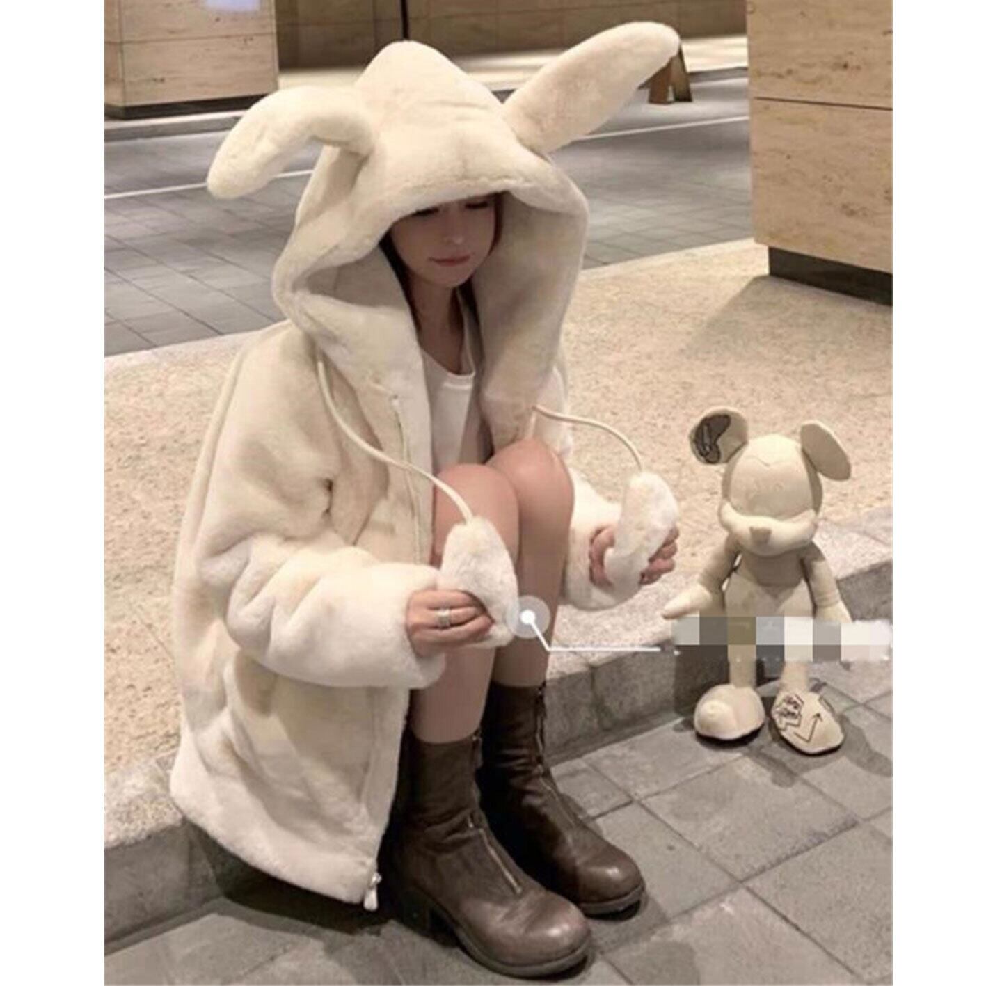 韓国ファッション 冬 可愛い 動くよ うさぎの耳 フェイクファー コート 厚手 sweet系 トレンド トップス アウター ボトムス レディース ワンピース 春 夏 半袖 長袖 きれいめ ロング 可愛い かわいい 膝丈 ひざ丈 20代 30代 40代 マキシ タイト レトロ モダン 白 黒 2024 RB-R7-12-NS-SA-060