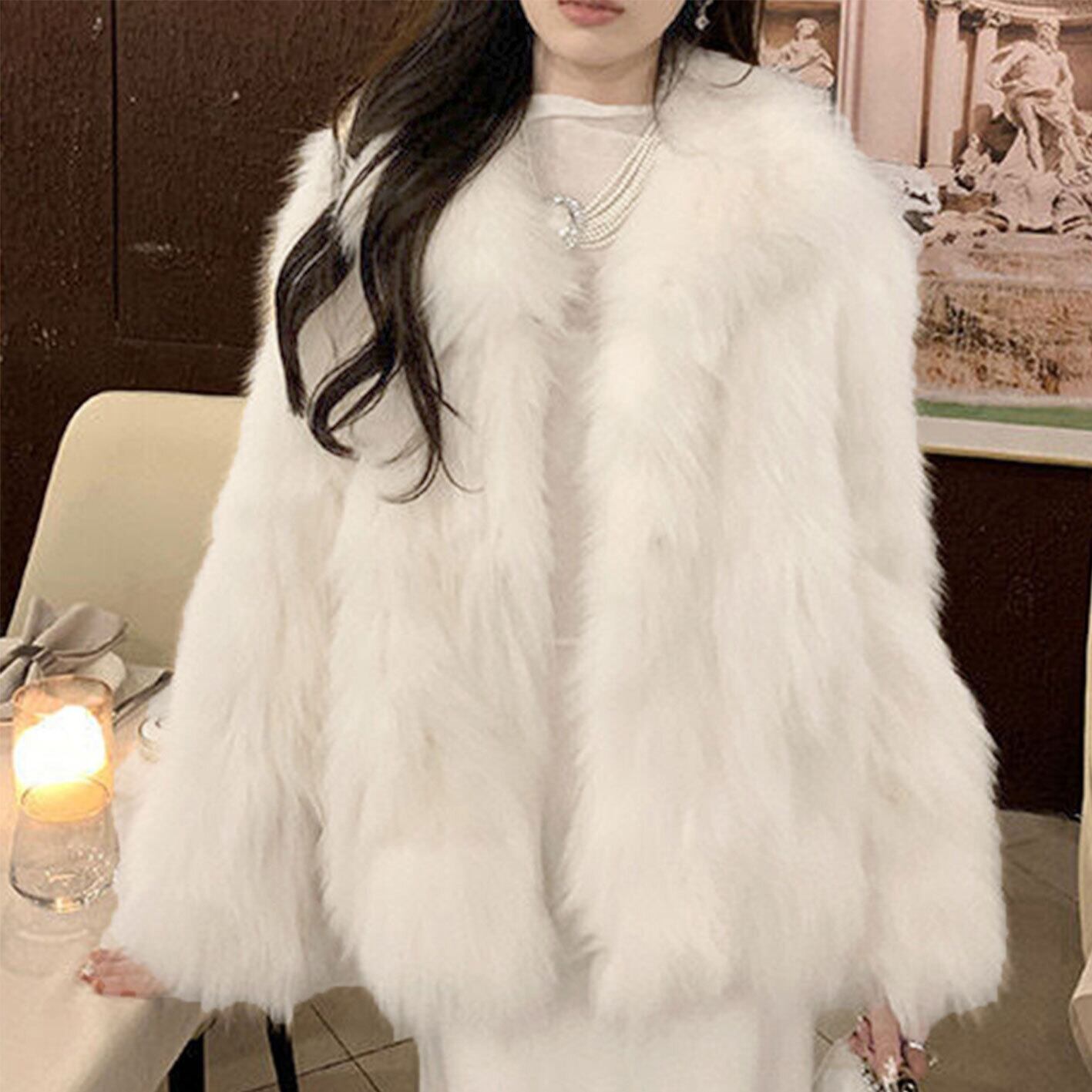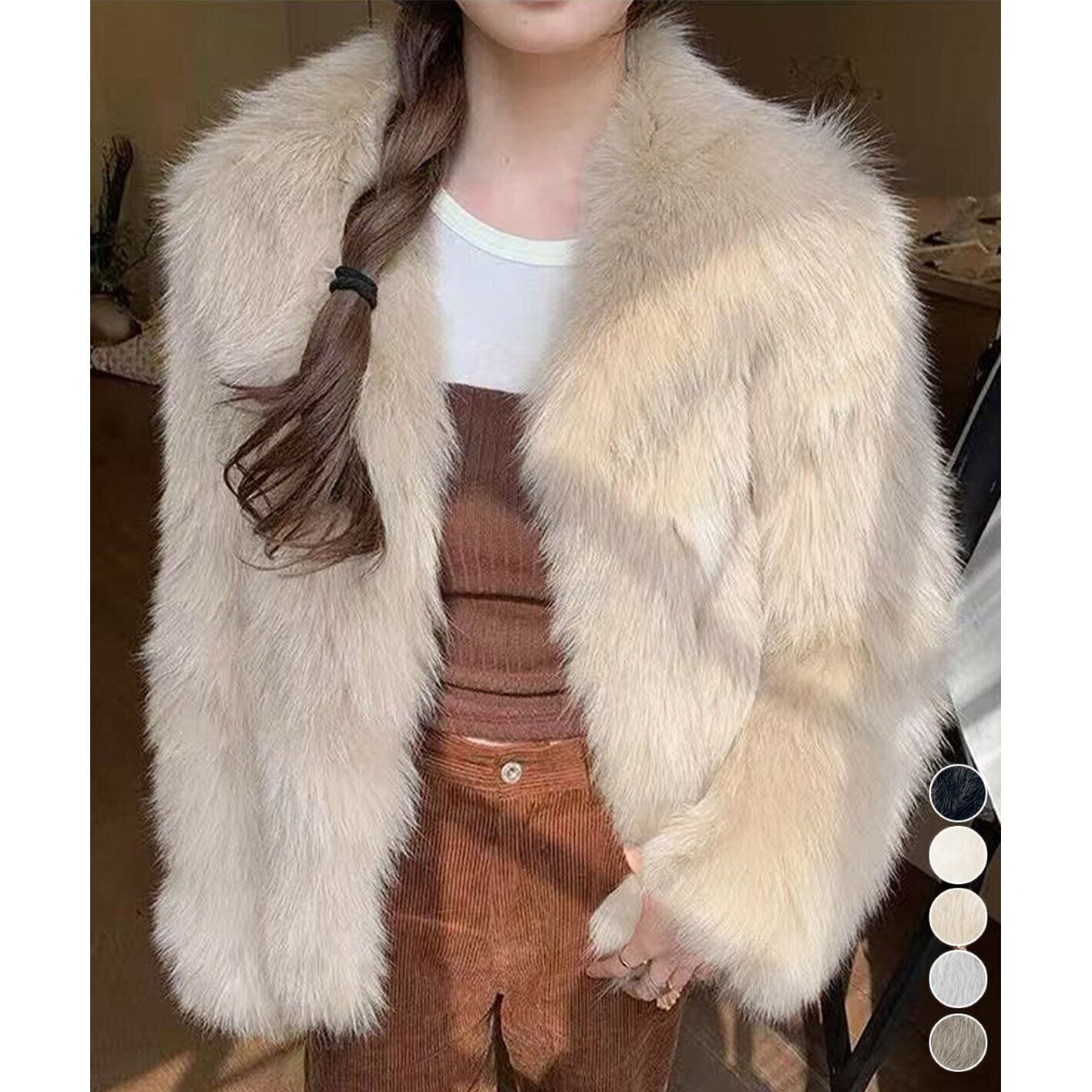 ふわふわ フェイクファー ジャケット ビッグ襟 トップス アウター ボトムス レディース ワンピース 春 夏 半袖 長袖 きれいめ ロング 可愛い かわいい 膝丈 ひざ丈 20代 30代 40代 マキシ タイト レトロ モダン 白 黒 2024 RB-R7-12-NS-SA-098