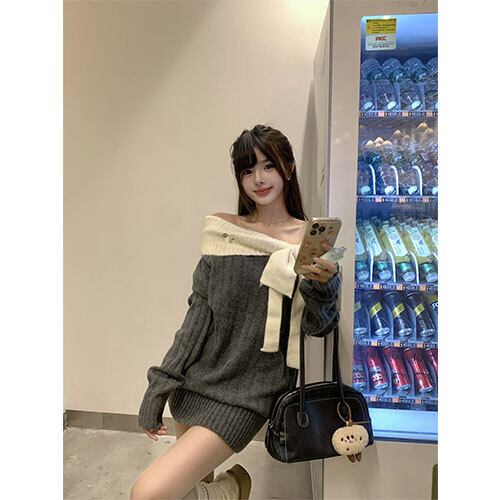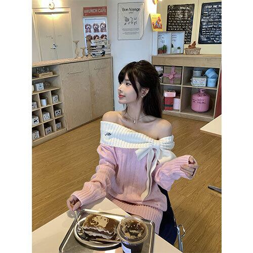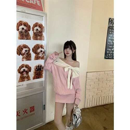2025年INS 秋冬新作 気質 おしゃれ 可愛い スウィート オフショルダー ニット ワンピース トップス アウター ボトムス レディース ワンピース 春 夏 半袖 長袖 きれいめ ロング 可愛い かわいい 膝丈 ひざ丈 20代 30代 40代 マキシ タイト レトロ モダン 白 黒 2024 RB-R8-01-NS-SA-007