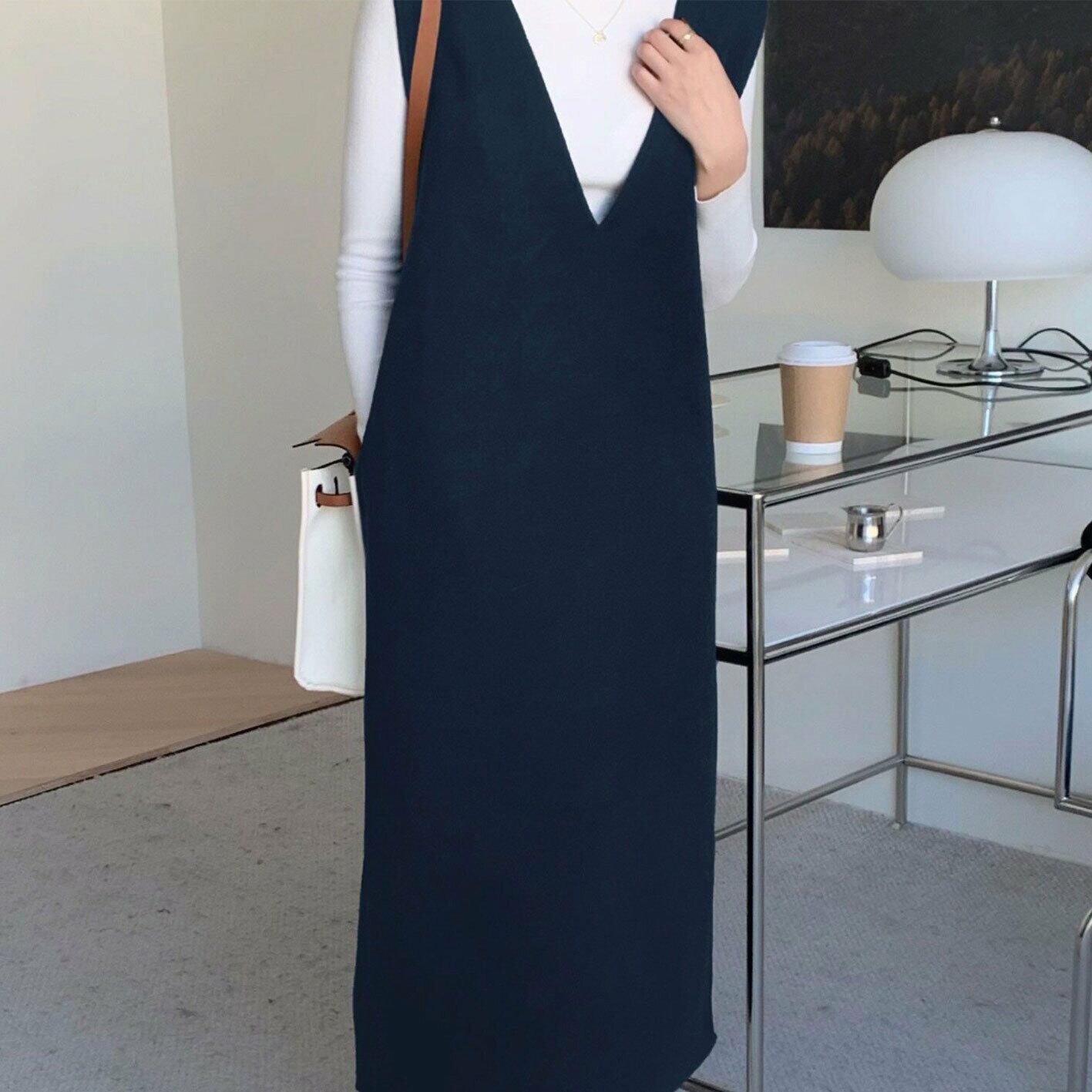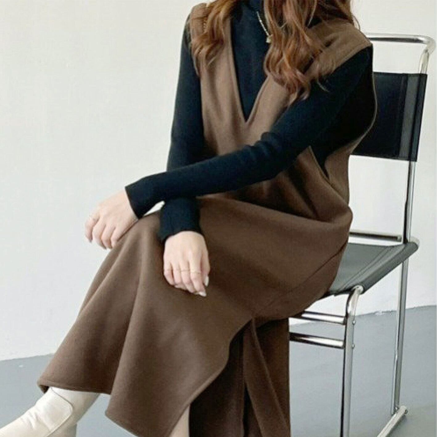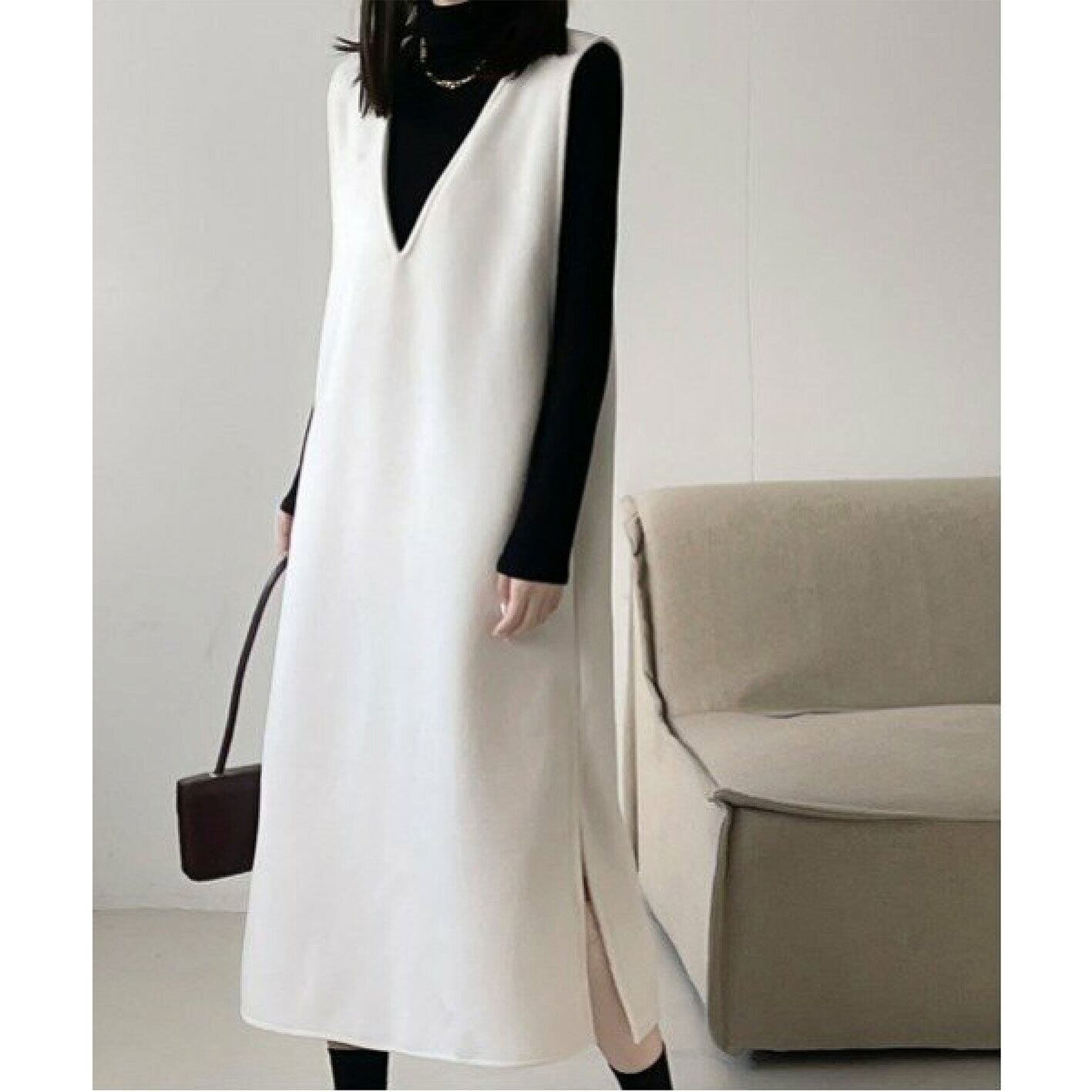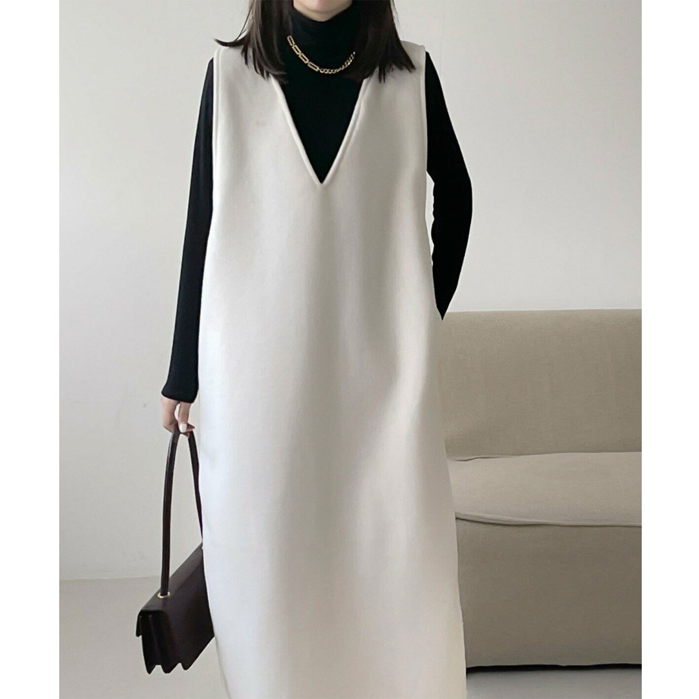 2025年INS 秋冬新作 気質 おしゃれ 厚手 V ネック ベストスカート トップス アウター ボトムス レディース ワンピース 春 夏 半袖 長袖 きれいめ ロング 可愛い かわいい 膝丈 ひざ丈 20代 30代 40代 マキシ タイト レトロ モダン 白 黒 2024 RB-R8-01-NS-SA-018