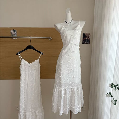 今季マストバイ INS 新作 おしゃれ chic 韓国ファッション 刺繍 キャミソール ワンピース トップス アウター ボトムス レディース ワンピース 春 夏 半袖 長袖 きれいめ ロング 可愛い かわいい 膝丈 ひざ丈 20代 30代 40代 マキシ タイト レトロ モダン 白 黒 2024 RB-R8-01-NS-SA-053