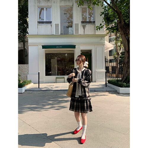 おしゃれ カジュアル系 チェック柄 chic 韓国ファッション ワンピース トップス アウター ボトムス レディース ワンピース 春 夏 半袖 長袖 きれいめ ロング 可愛い かわいい 膝丈 ひざ丈 20代 30代 40代 マキシ タイト レトロ モダン 白 黒 2024 RB-R8-01-NS-SA-071