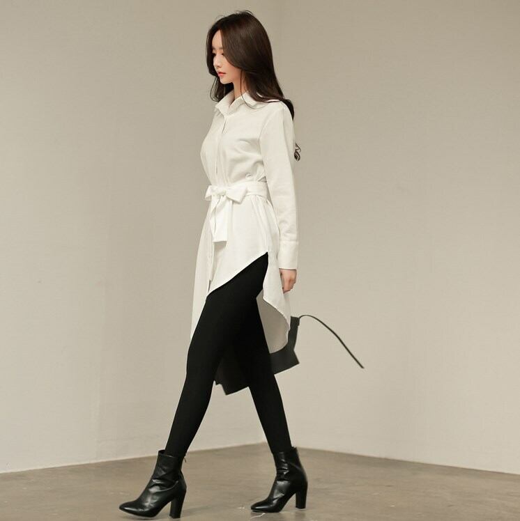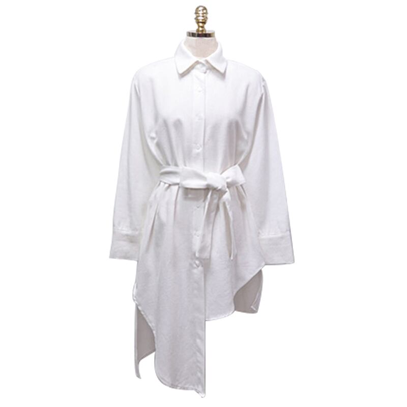 シャツ ブラウス ウエストリボン アシンメトリー 長袖 カッコいい 大人コーデ オールシーズン