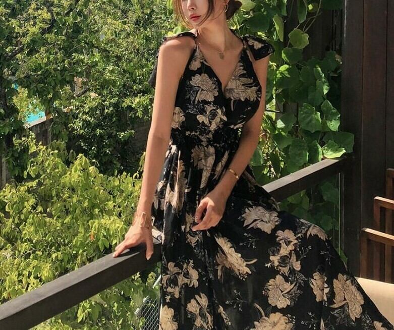 ao-19714_レディースファッション リゾートワンピース 40代 30代 20代 沖縄 ハワイ シフォン 花柄