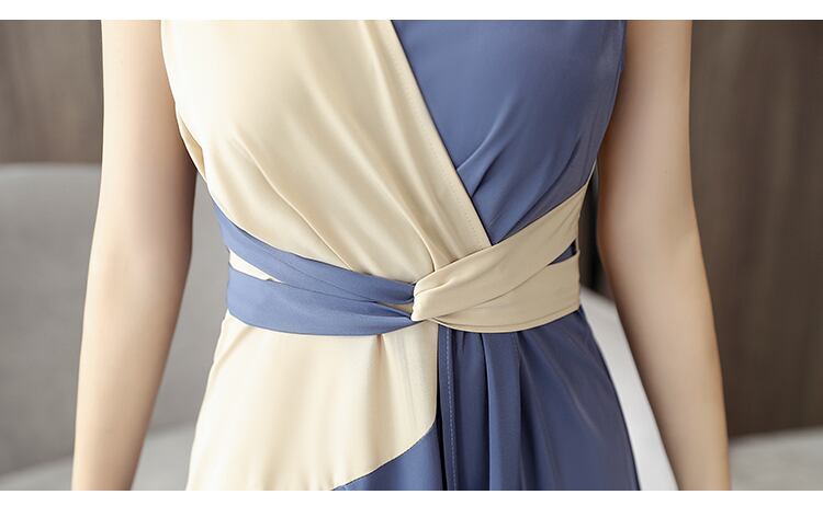 バイカラー ワンピース ノースリーブ ハイウエスト 上品 鮮やか お呼ばれ