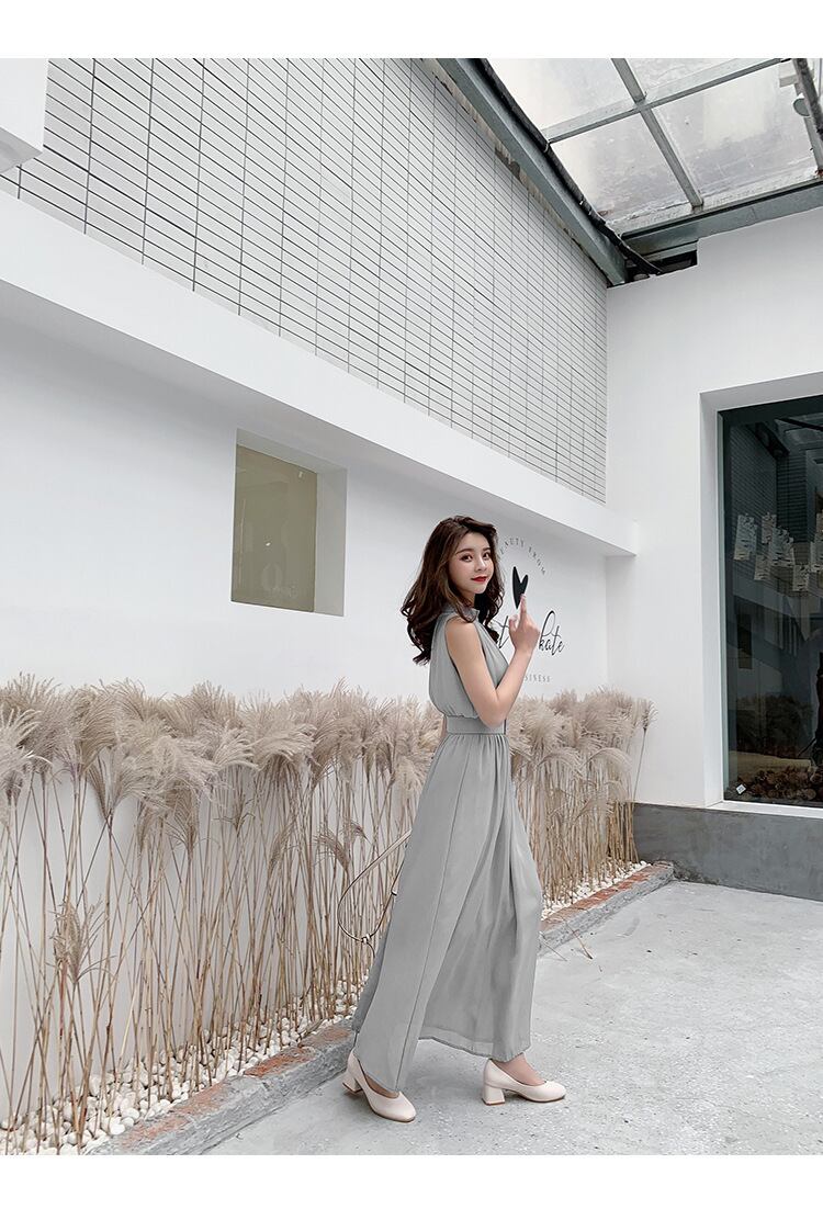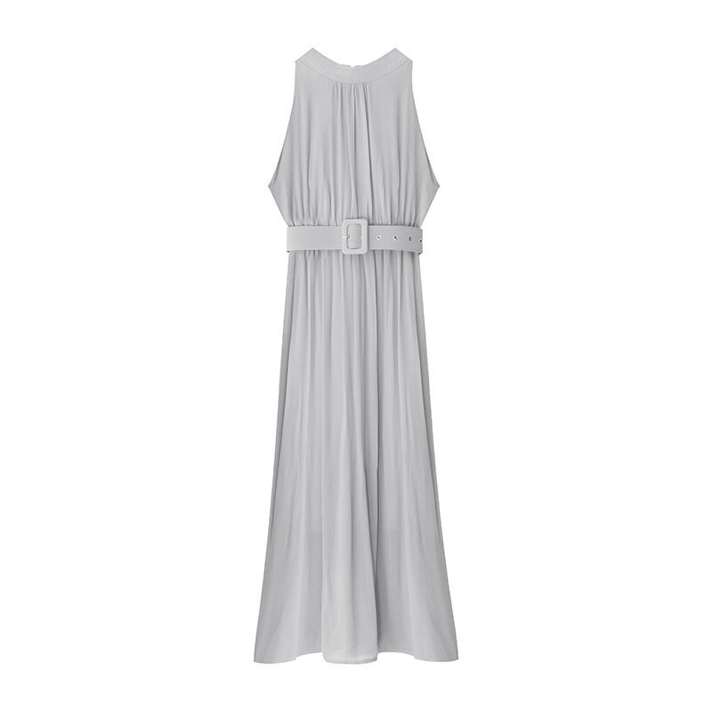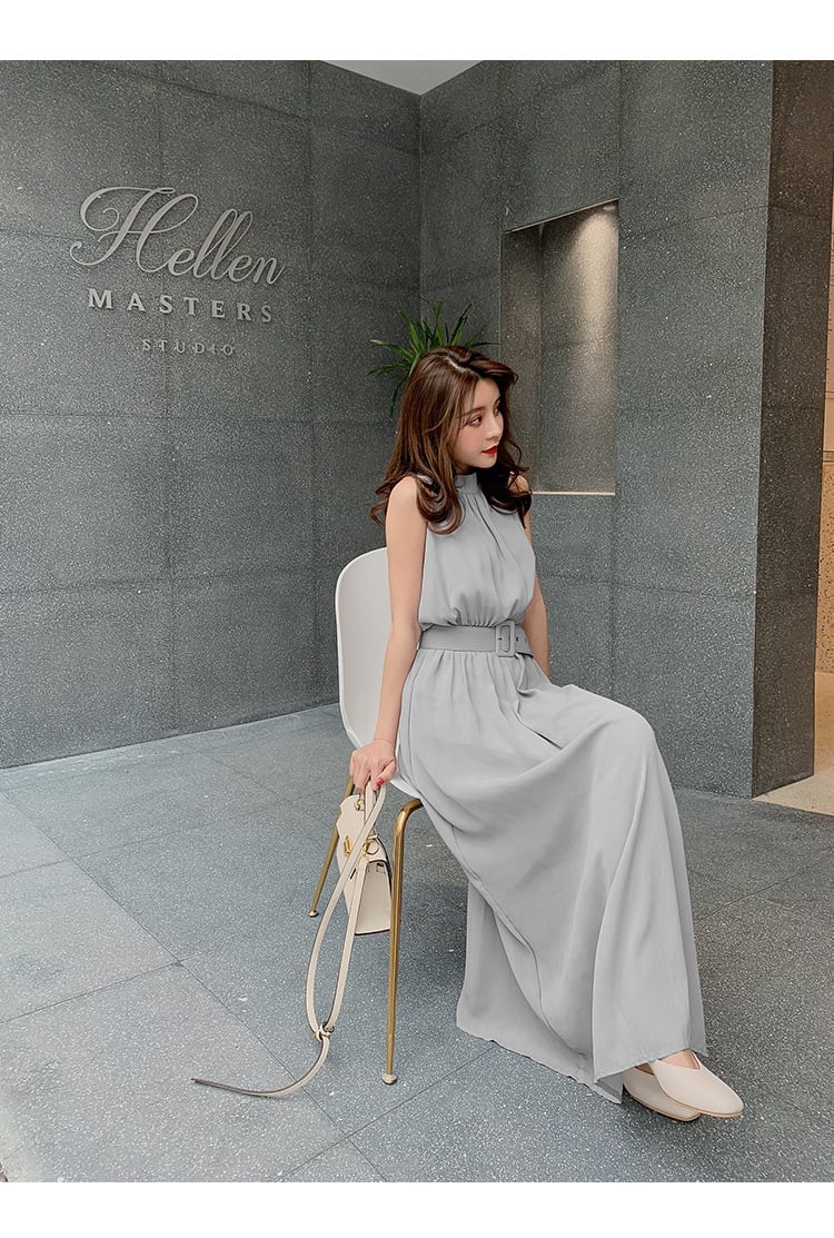 ハイネック ロングワンピース ベルト エレガント ノースリーブ デート