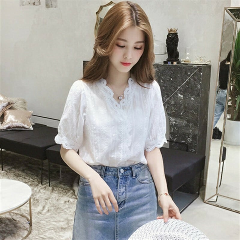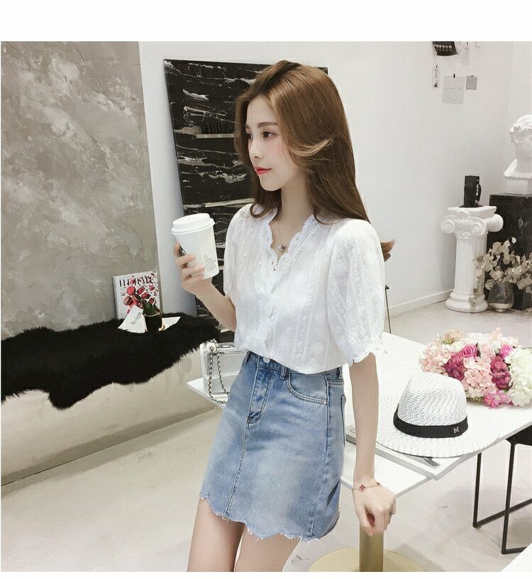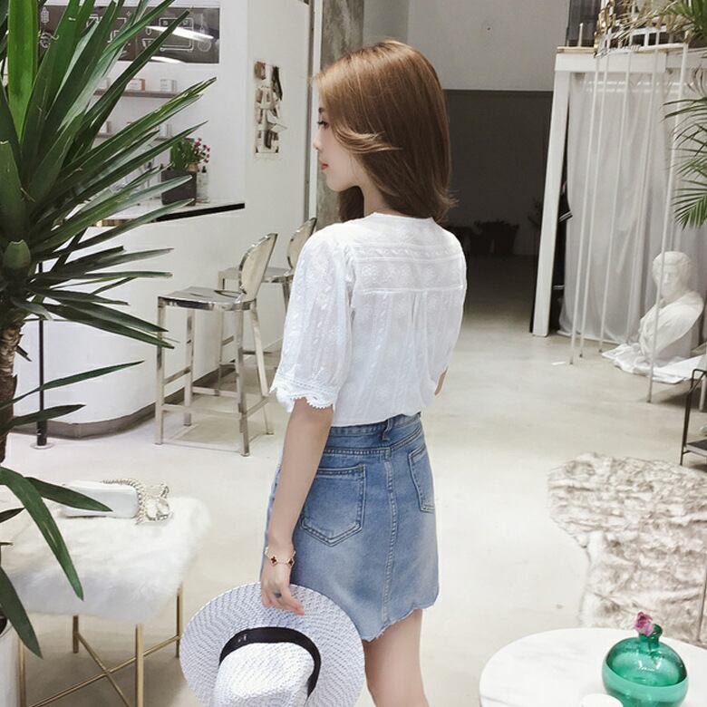 半袖 Vネック レース オフィス シンプル 上品 夏 爽やか 大人かわいい