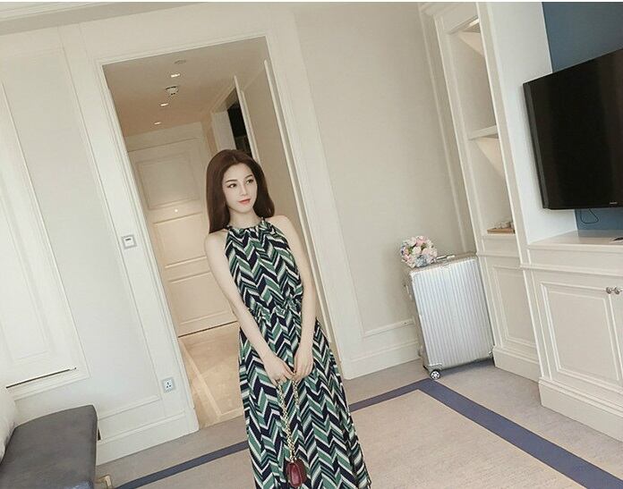 柄ワンピース リゾート ホルターネック ロングスカート 大人 夏 甘すぎない ゆったりウエスト