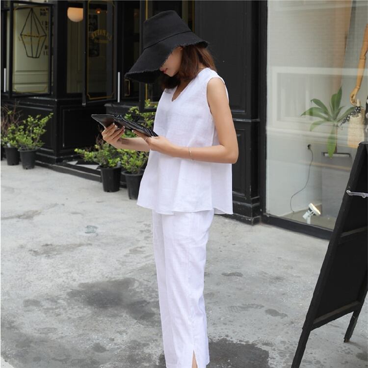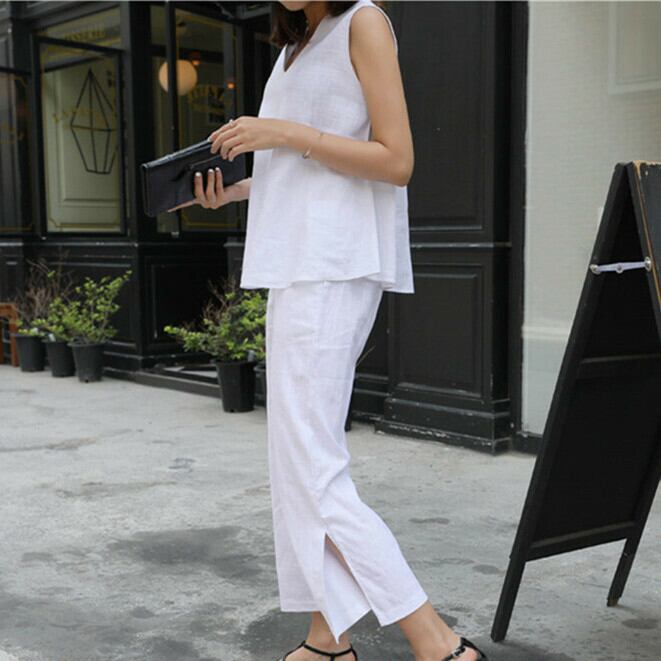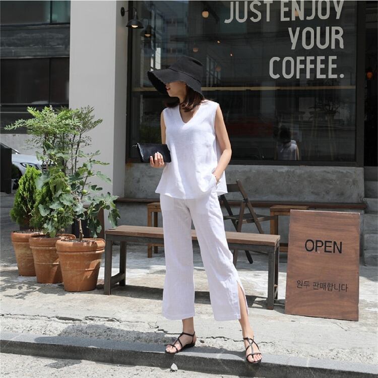 セットアップ Vネック 大人コーデ カジュアル ゆったり ノースリーブ 夏