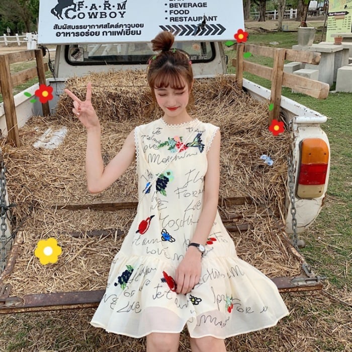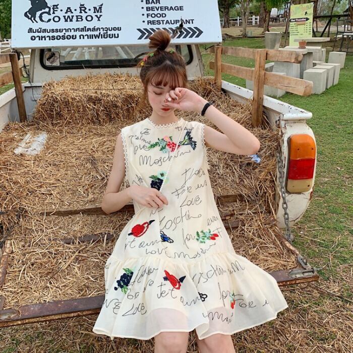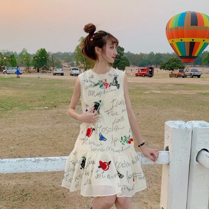 レターメッセージ デザイン ワンピース トレンド ミニ ショート ハイウエスト トレンド オルチャン お出かけ