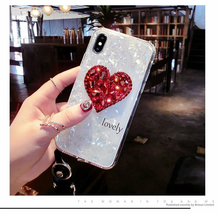韓国風 iPhoneケース ハードジェル 立体 ハート ストラップ付 キラキラ 可愛い シリコン
