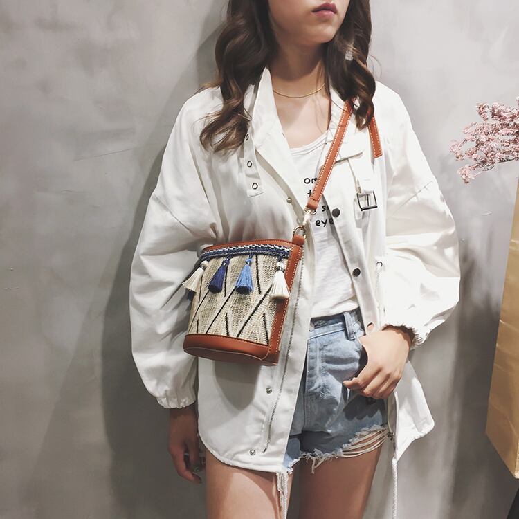 ショルダーバッグ 夏 ビーチ フリンジ 小さめ バケツバッグ デザイン◎ かわいい
