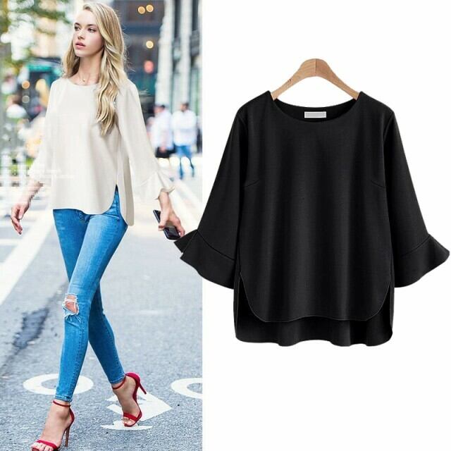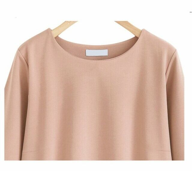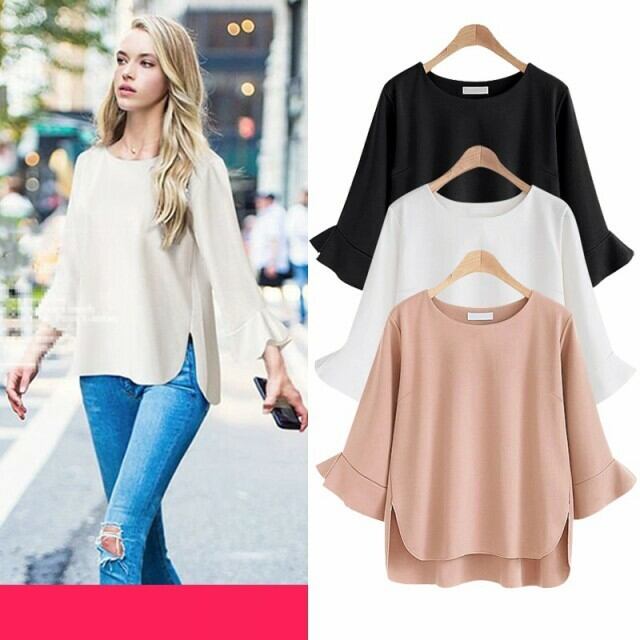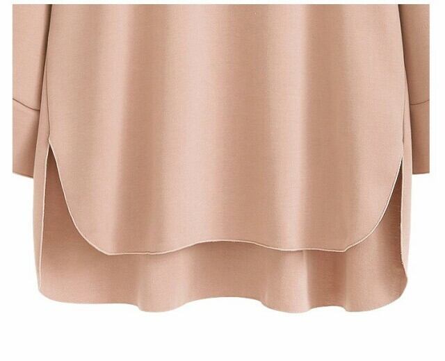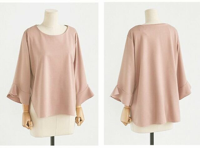 欧米 シャツ カジュアル ラウンドネック 9分袖 ベルスリーブ 無地 大きいサイズ フェミニン お出かけ