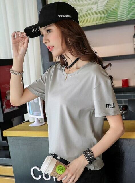 Tシャツ コットン ラウンドネック 半袖 無地 ゆったり 刺繍 大人可愛い カジュアル キレイめ
