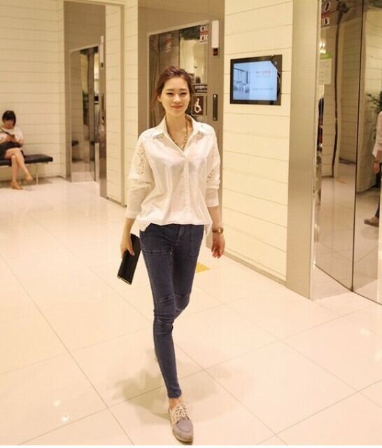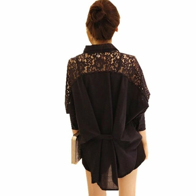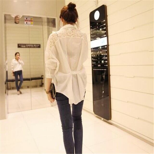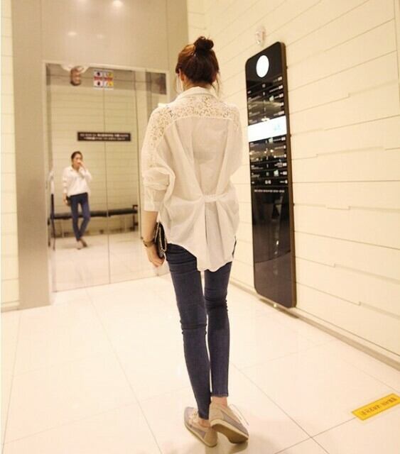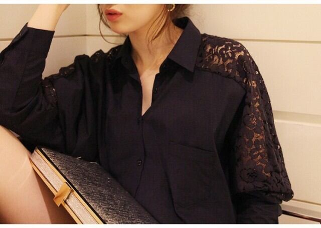 お洒落 シャツ 綿 レース 襟付き キレイめ 長袖 袖レース 無地 刺繍 ポケット ボタン トレンド 大人可愛い